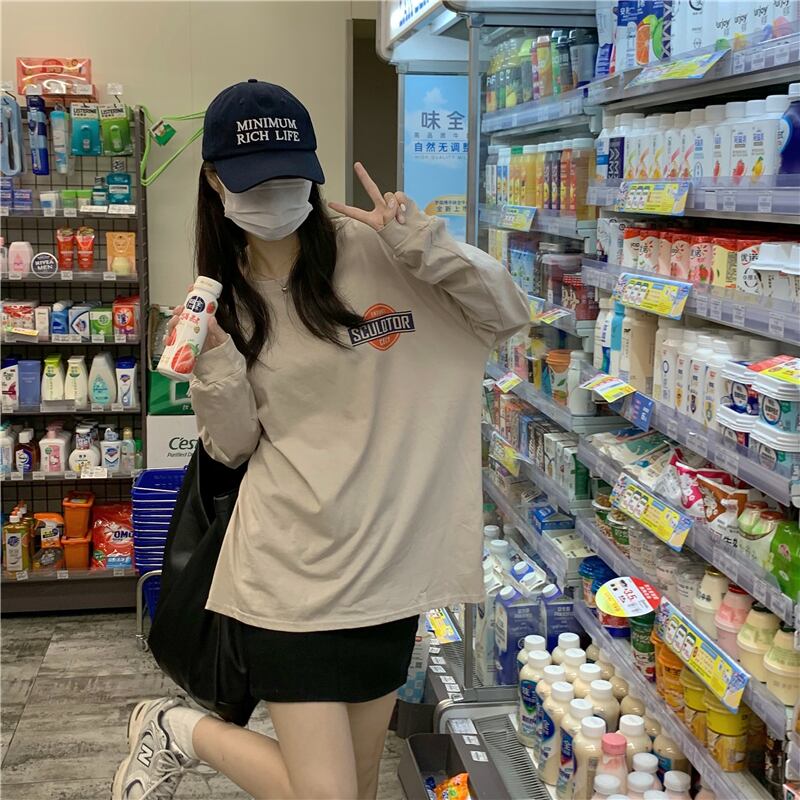 夏服韓国ファッショントレンドスタイルプリントルーズカジュアルTシャツトップス レディース ロング ストリート 原宿 夏物 長袖 Studios86224363839 | pLegLad Studios