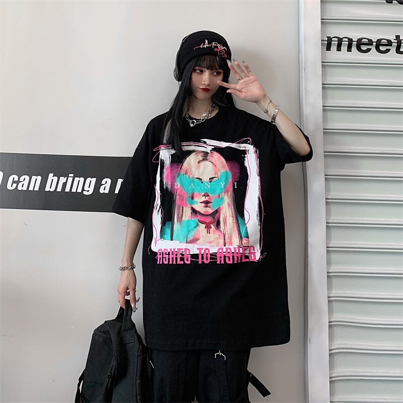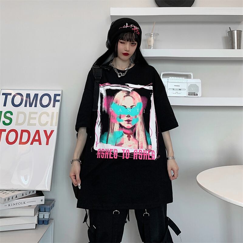 夏服トレンドTシャツレディース韓国ファッションダークブラックプリントトップス 夏物 スタイル コーデ モノクロ Studio8216677987