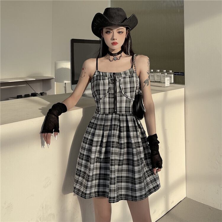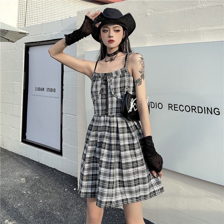 スカート レディース夏服韓国ファッショントレンドスタンダード格子柄ストラップレスハイウェストウェスト薄手Aラインワンピース レトロ 夏物 ウエスト Studios56537475730 | pLegLad Studios