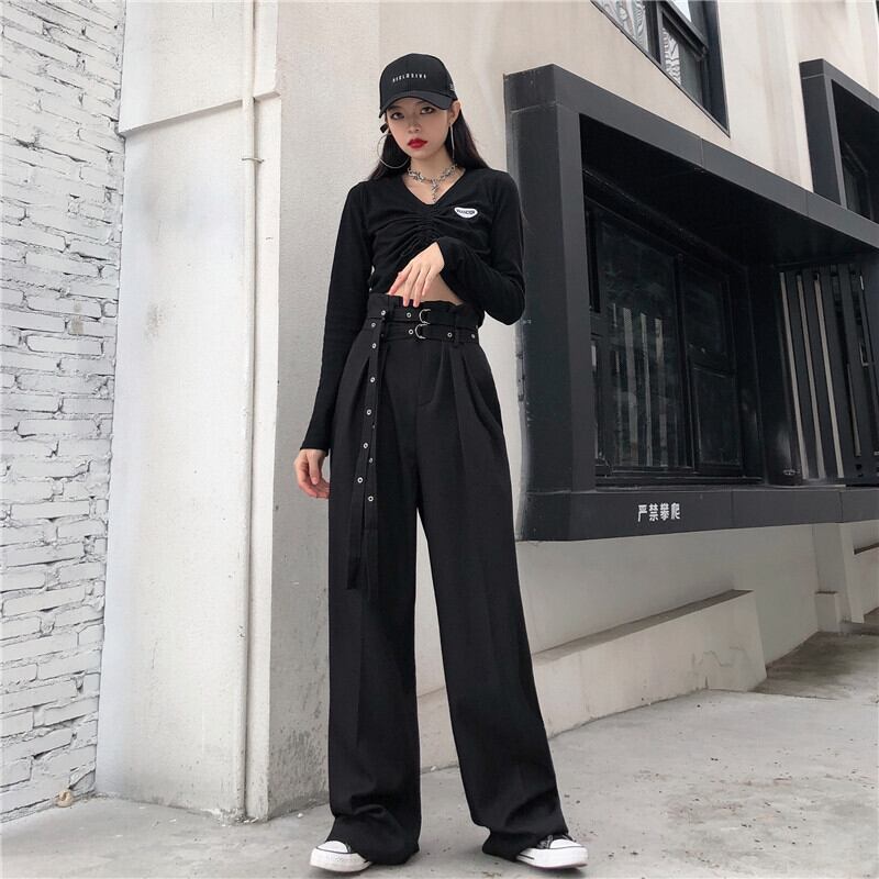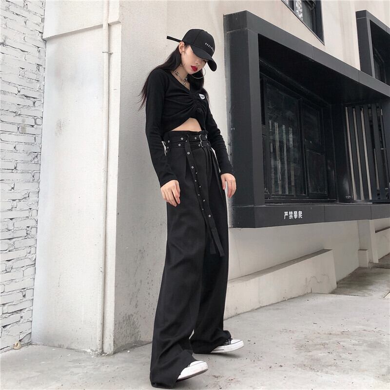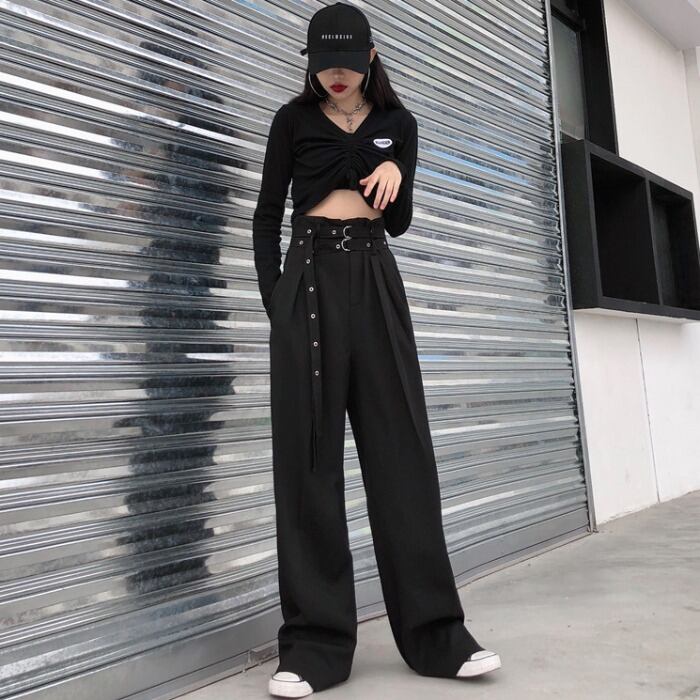 カジュアル夏服スタイル韓国ファッションハイウェストウェスト薄手ワイドレッグパンツ 夏物 ワイドパンツ ボーイズ ウエスト コーデ モノクロ Studio69297047869 | pLegLad Studios