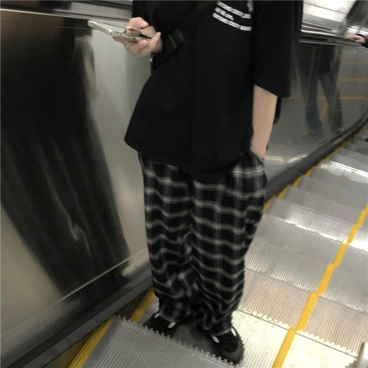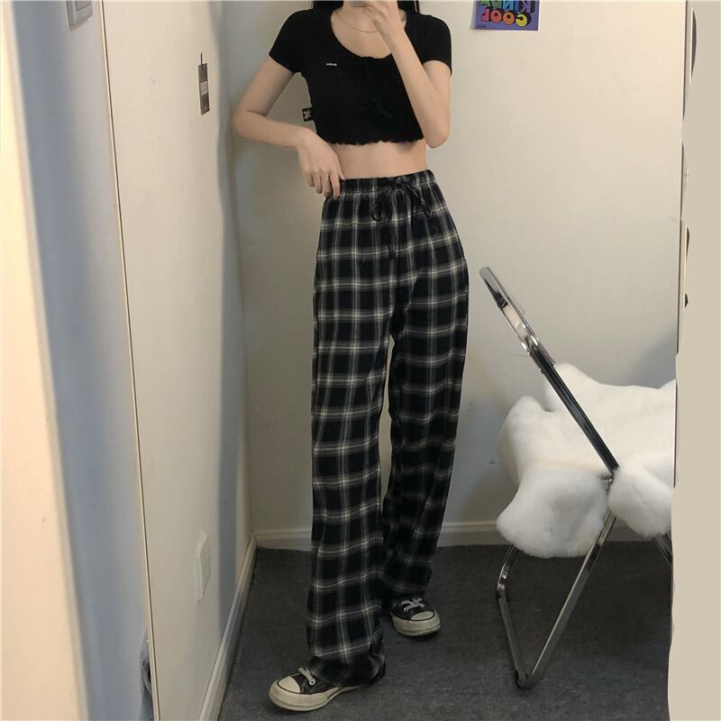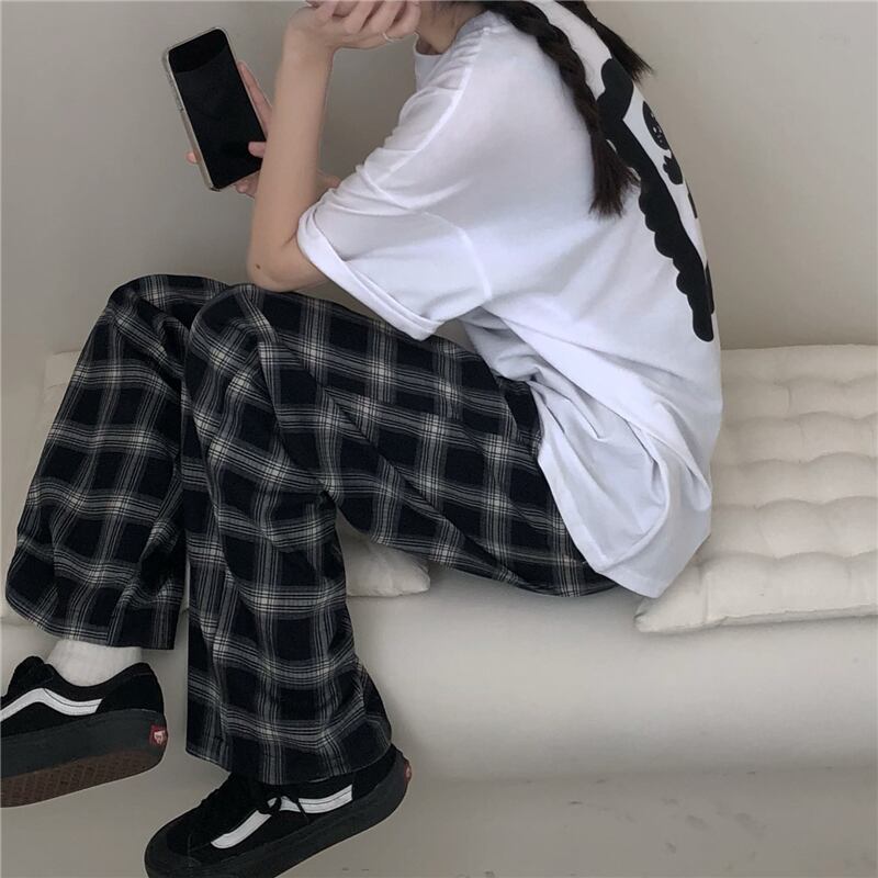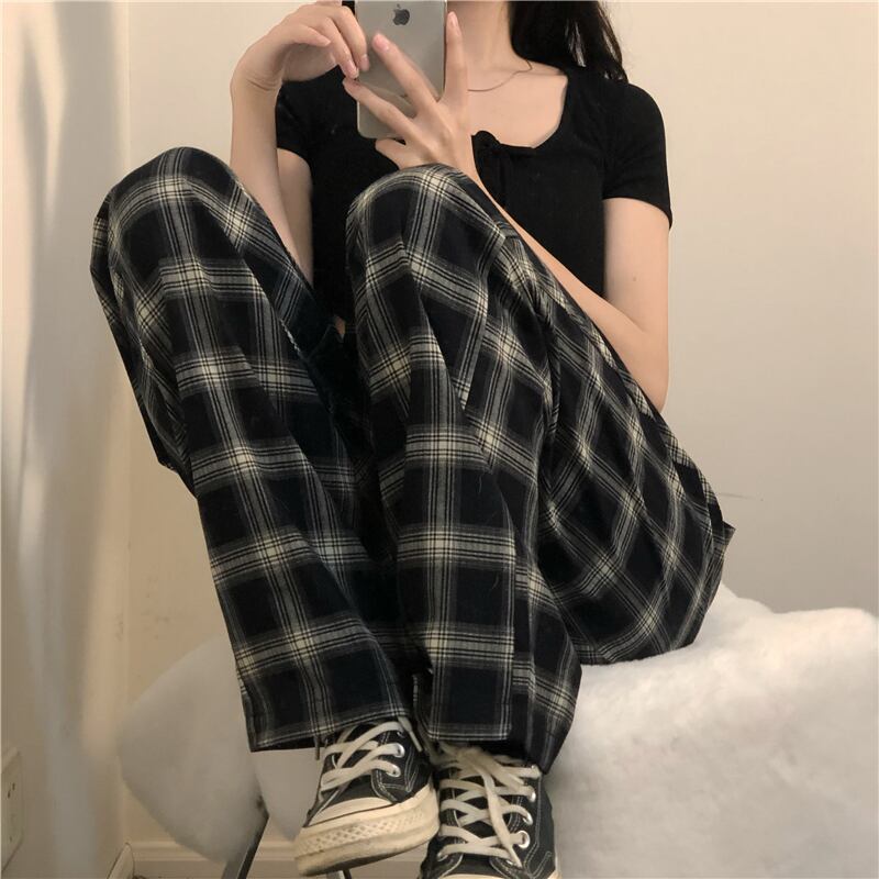 ウェスト格子柄夏服韓国ファッションスタイルカジュアルパンツ ルーズ 夏物 ウエスト コーデ モノクロ Studio67266207441