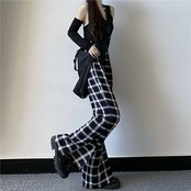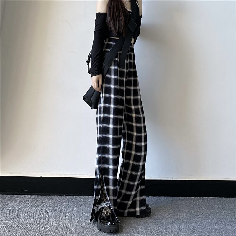 ハイウェストウェストルーズパンツ レディース夏服スタイル韓国ファッション薄手格子柄 夏物 シルク ステッチ ボーイズ ウエスト コーデ モノクロ Studio64238393051