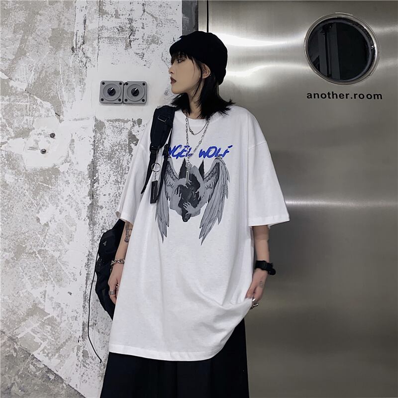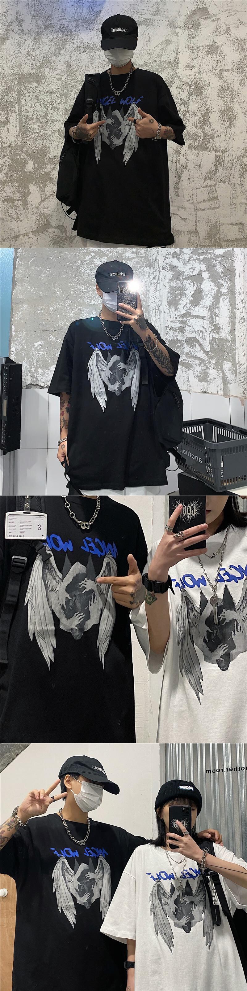 夏服Tシャツレディーススタイル韓国ファッショントレンドスタンダードプリントルーズトップス レトロ ストリート 夏物 コーデ モノクロ Studio9872855619