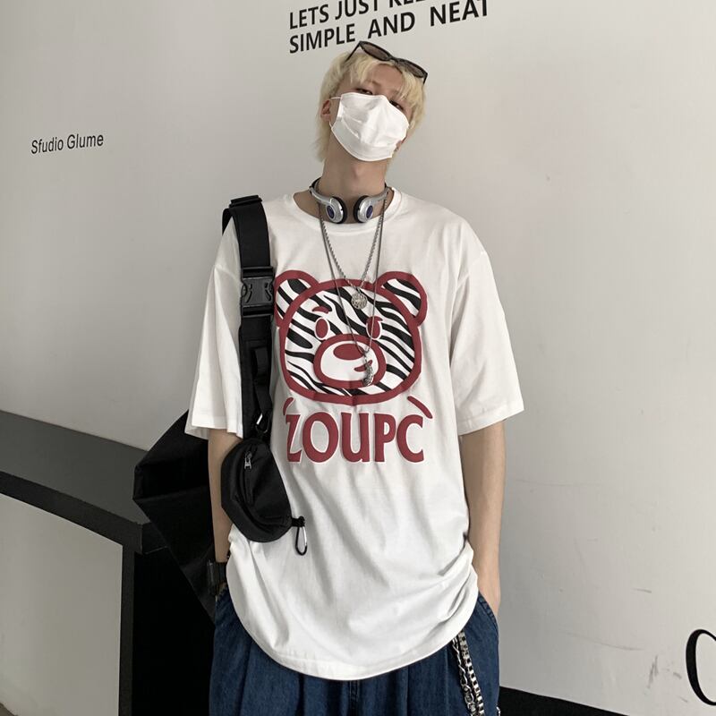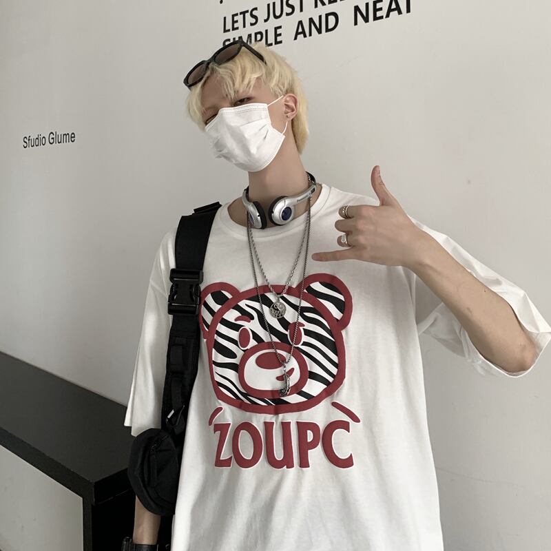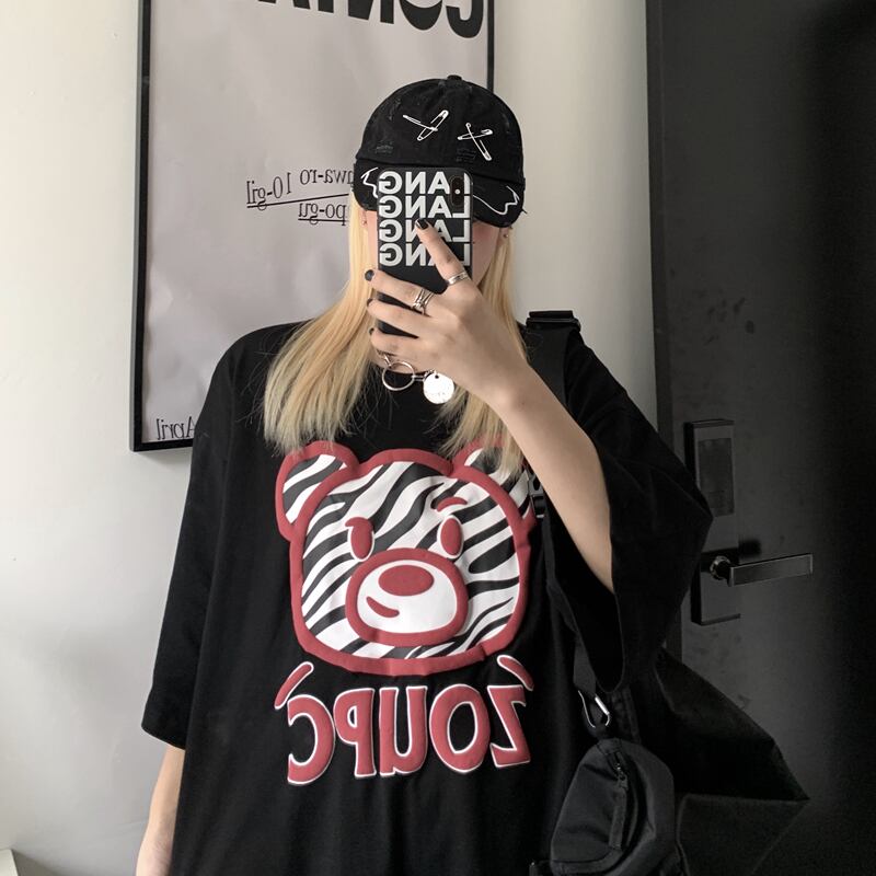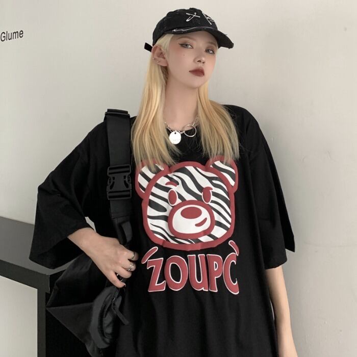 夏服スタンダードプリント柄Tシャツレディース韓国ファッショントレンドプリントルーズトップス レトロ 夏物 スタイル コーデ モノクロ Studio24240670846 | pLegLad Studios