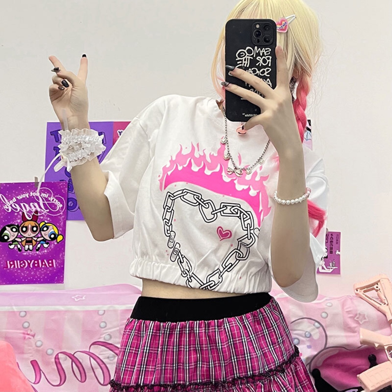 ショートTシャツレディース夏服韓国ファッショントレンドストレッチウェストルーズトップス エラスティック 伸縮 夏物 ウエスト コーデ モノクロ Studio46274454376 | pLegLad Studios