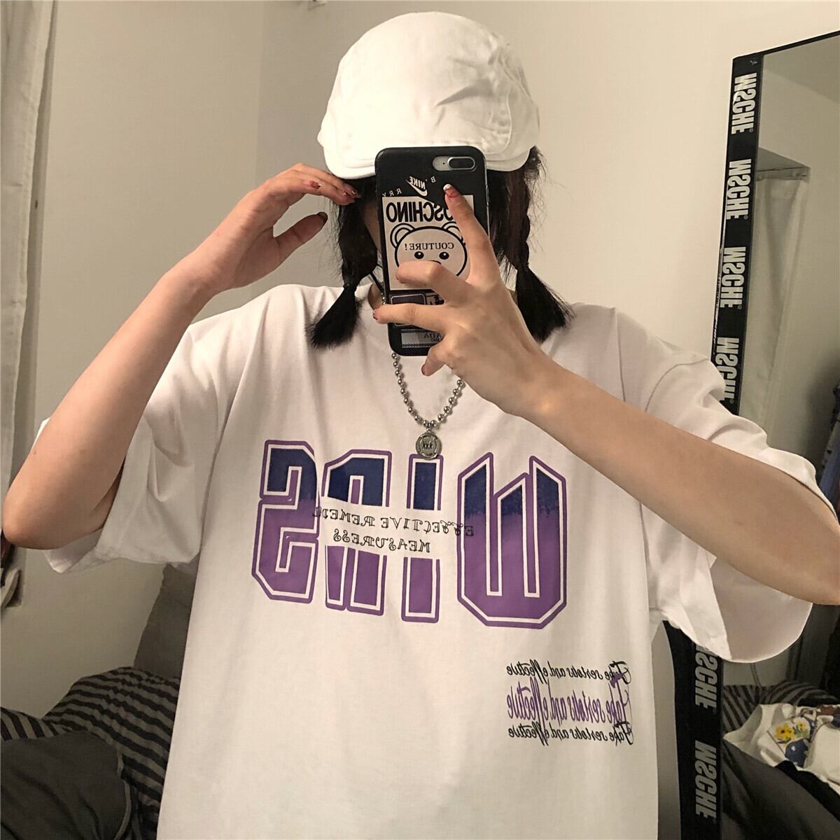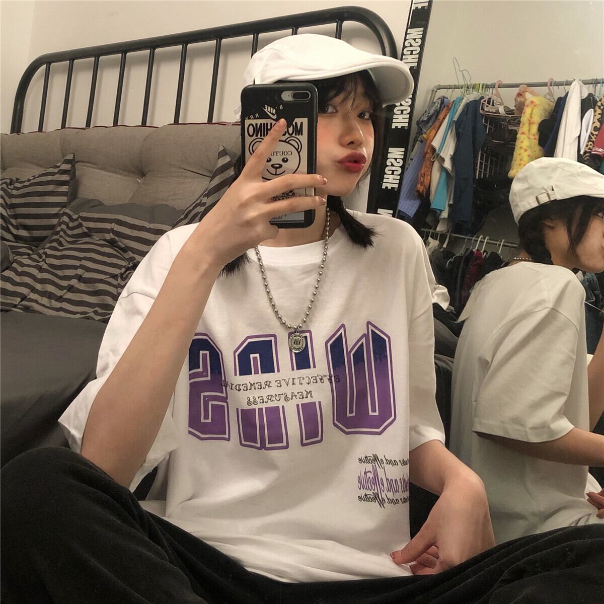 ラウンドネックカジュアルTシャツシャツ レディース夏服韓国ファッショントレンドスタイルゆったり 夏物 Oネック コーデ モノクロ Studio84174290157 | pLegLad Studios
