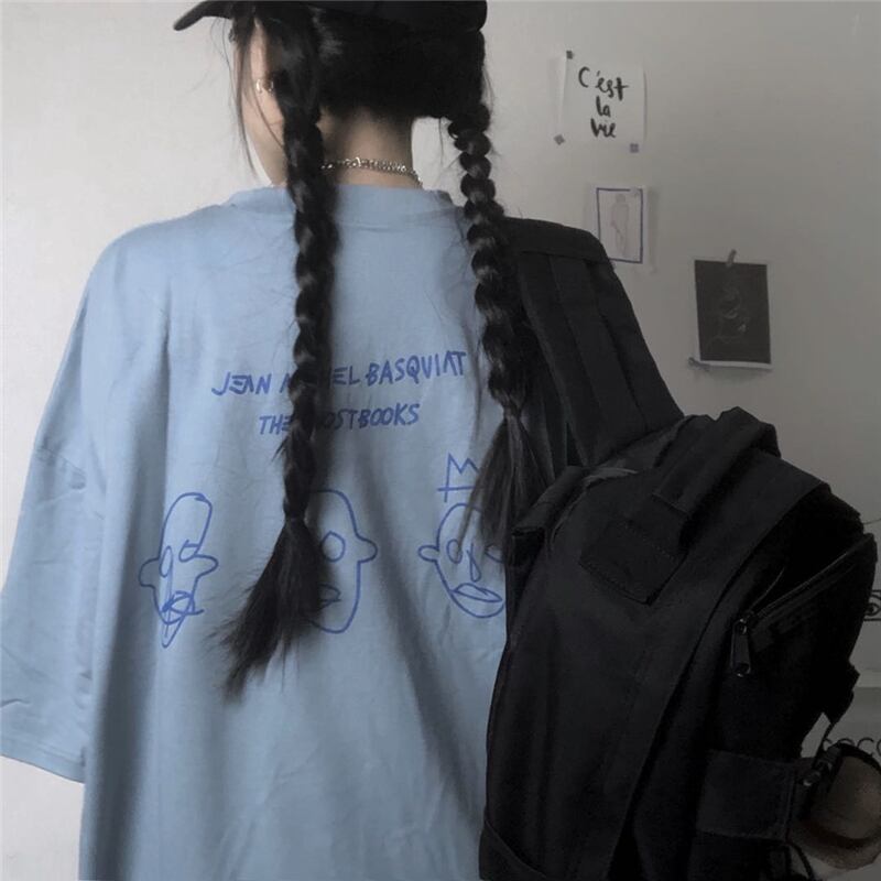 プリントTシャツレディース夏服韓国ファッショントレンドトップス 夏物 ボーイズ コーデ モノクロ Studio67098733033
