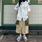 クロップドレディース夏服スタイル韓国ファッションパンツ カジュアル 原宿 夏物 ボーイズ コーデ モノクロ Studio65362947766