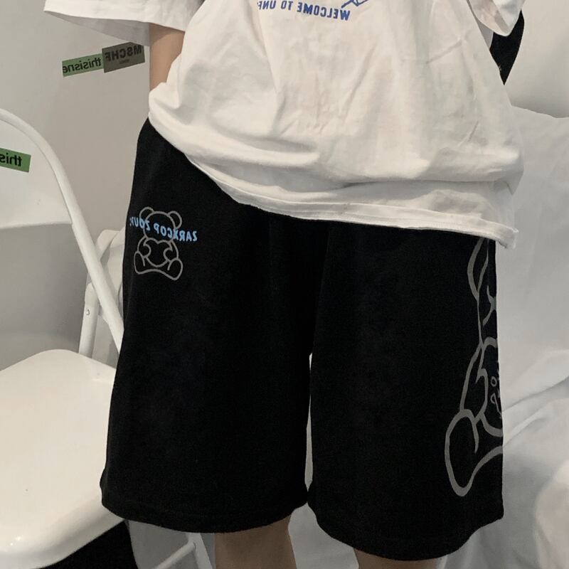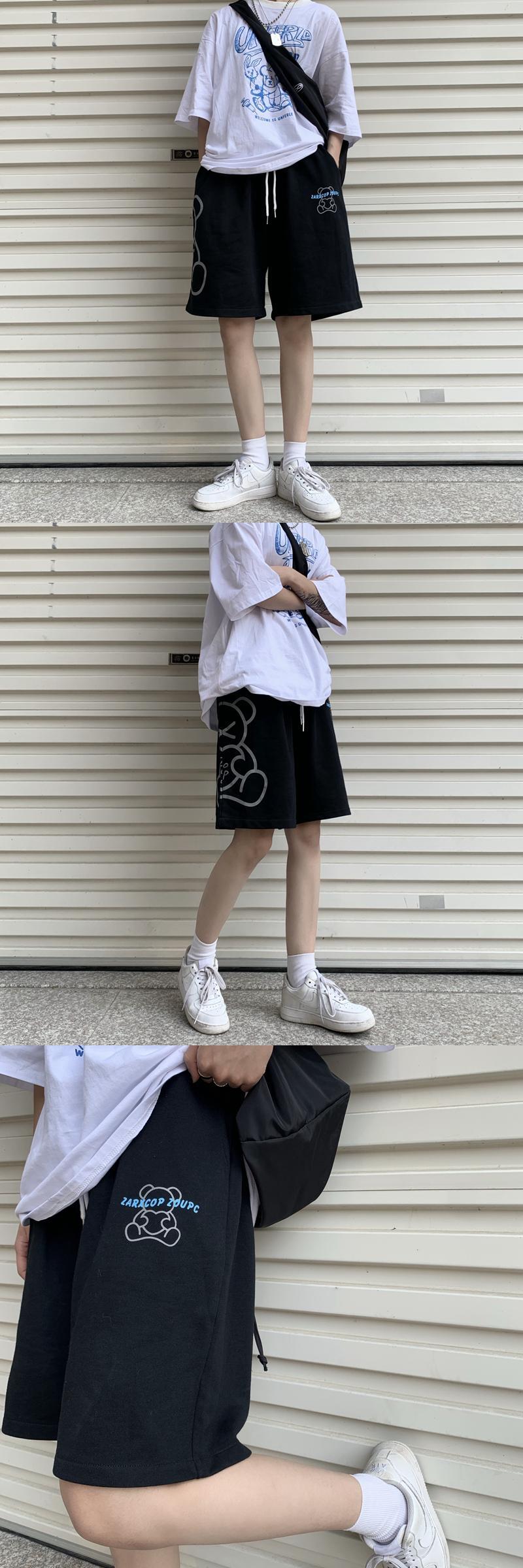 カジュアルパンツ 夏服トレンドプリント柄ルーズハイウェストウェストスリムショーツ 夏物 ウエスト コーデ モノクロ Studio9717406187