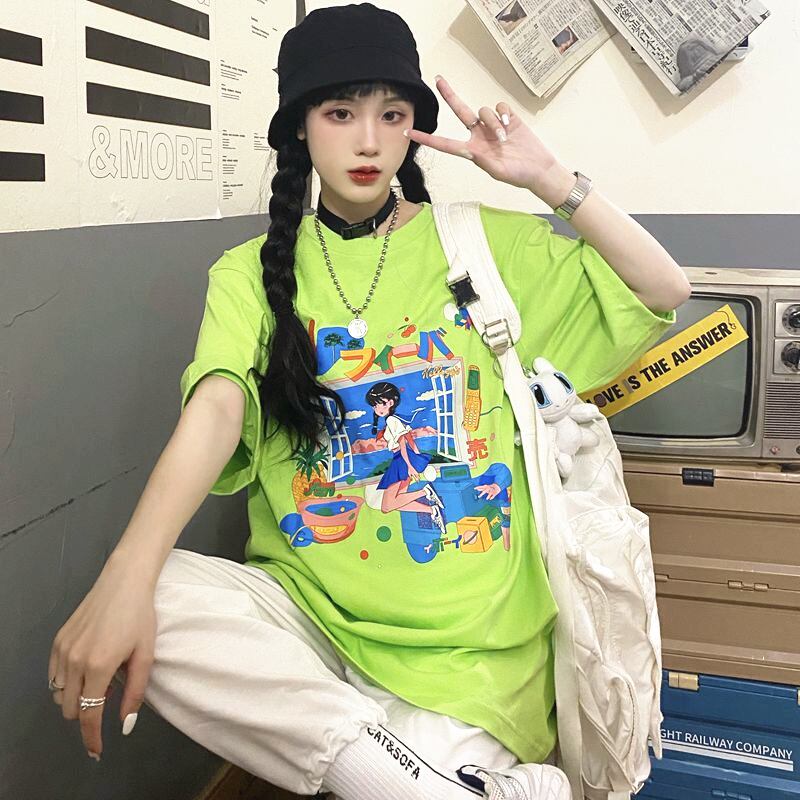 夏服カジュアルTシャツレディース韓国ファッショントレンドプリント柄ルーズ半袖スリーブトップス ショート ハーフスリーブ 夏物 スタイル コーデ モノクロ Studio43651387723
