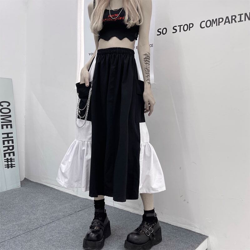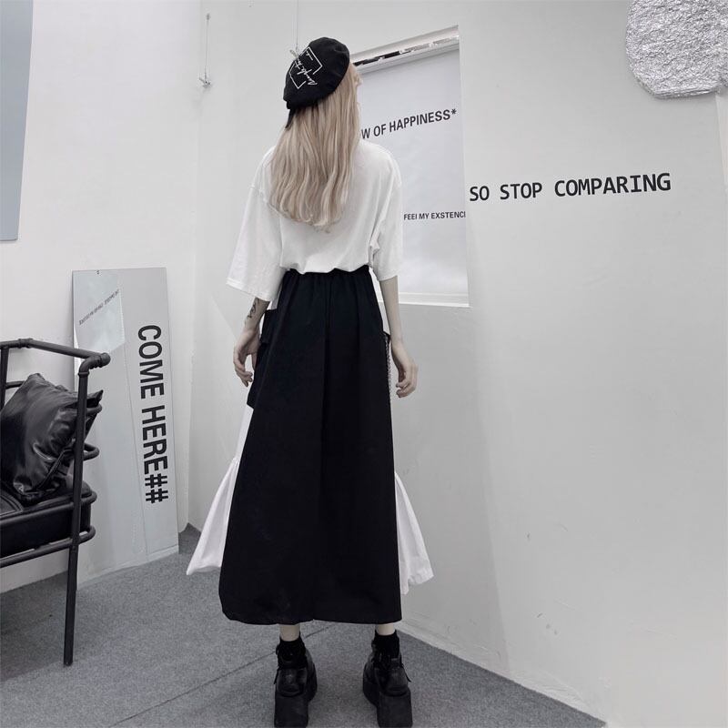 夏服ハイウェストウェストスカート レディース韓国ファッショントレンドカラーAライン 夏物 スタイル ウエスト ミドル丈 コーデ モノクロ Studio81451221603