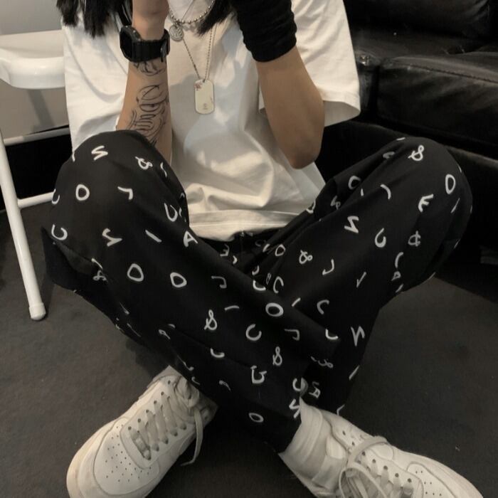 ルーズカジュアルパンツ 夏服スタイル韓国ファッションダークプリント 夏物 コーデ モノクロ Studio93025806644