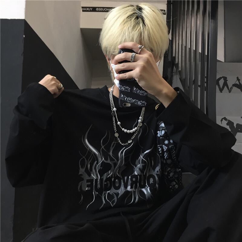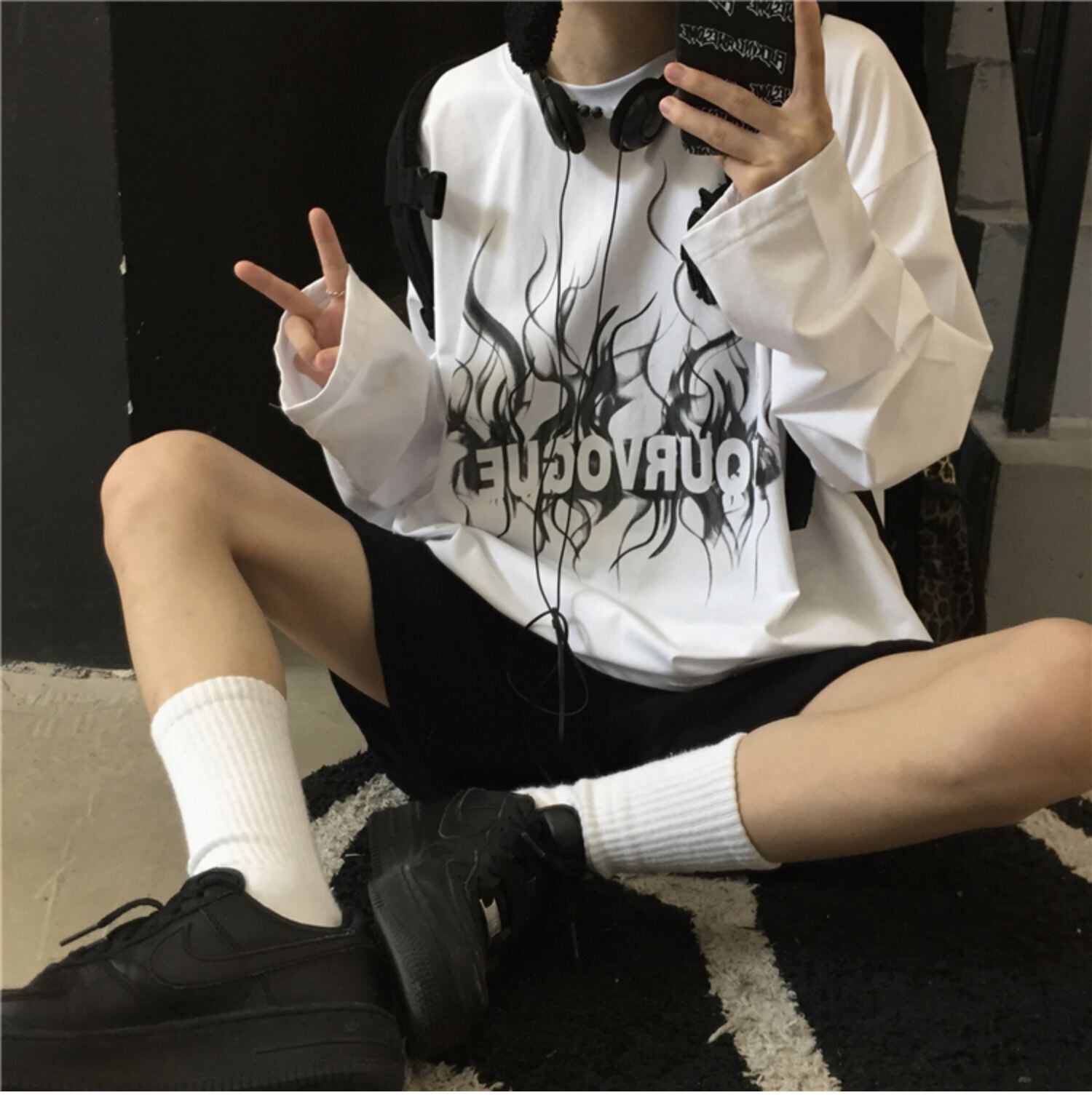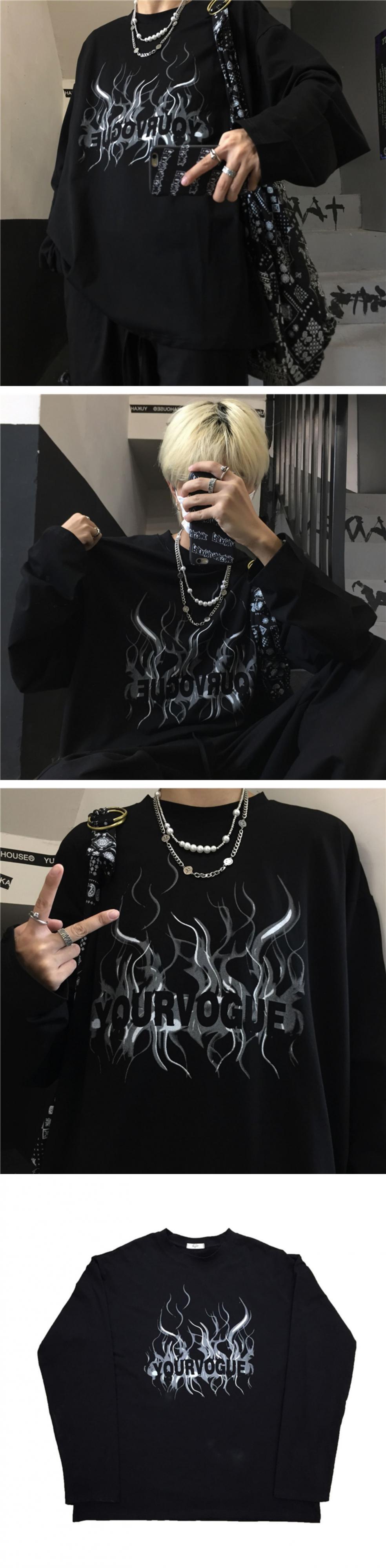 スプリングダークルーズ韓国ファッションゆったりTシャツレディース ロング 春物 長袖 コーデ モノクロ Studio32061354407