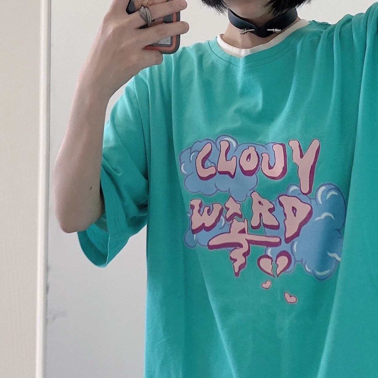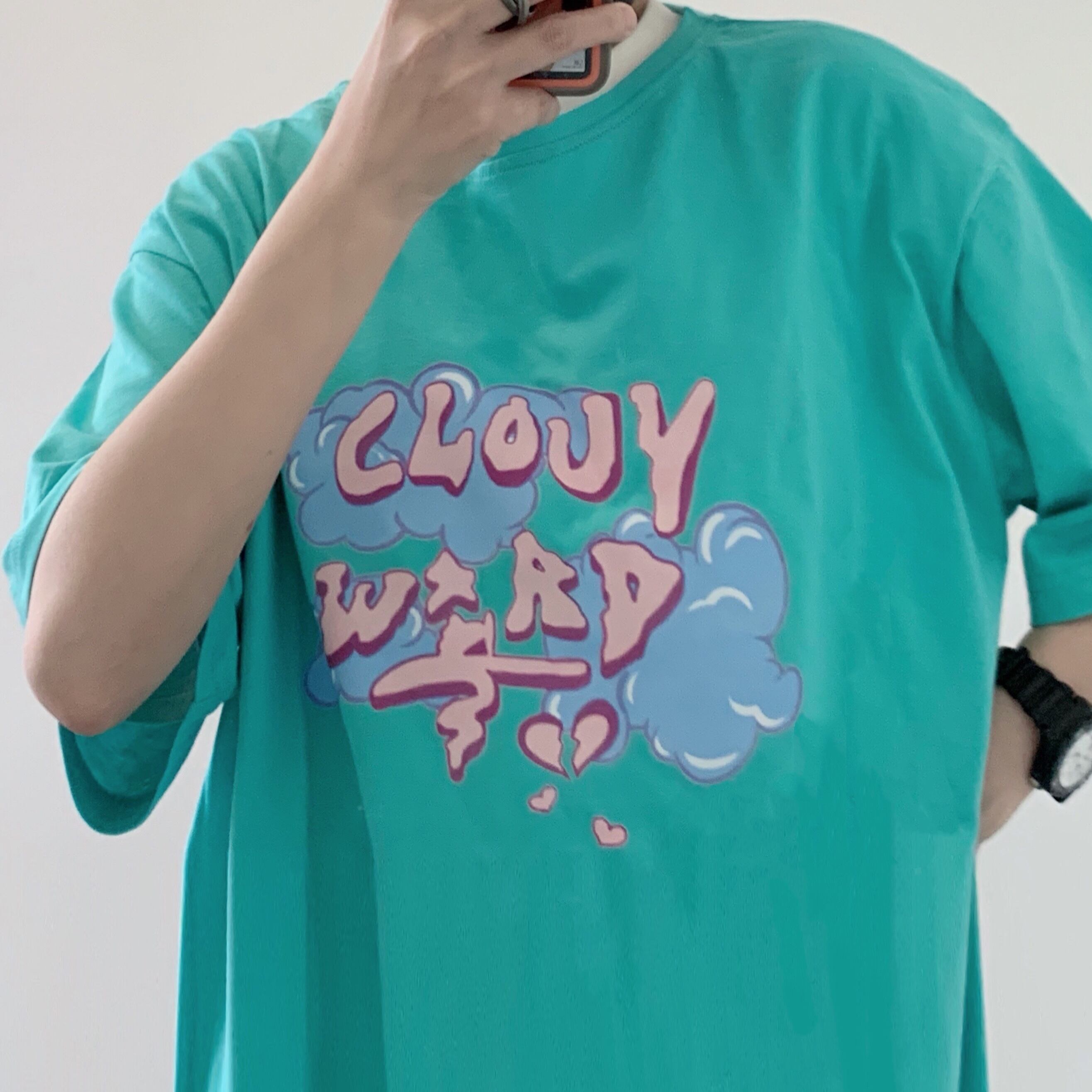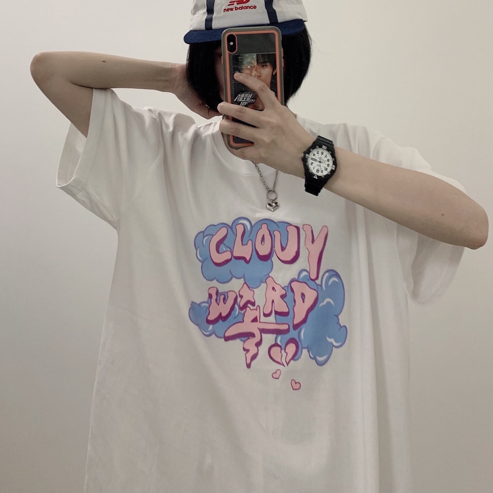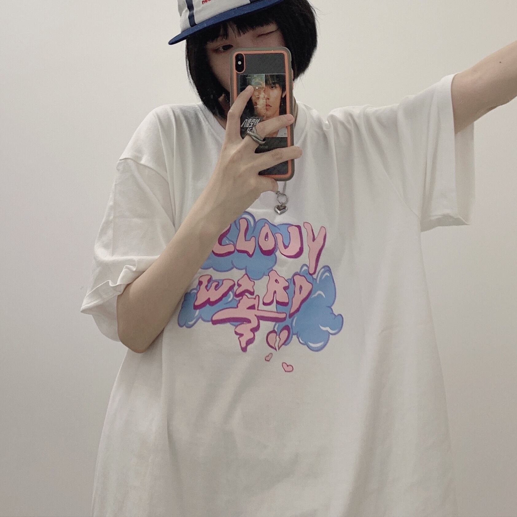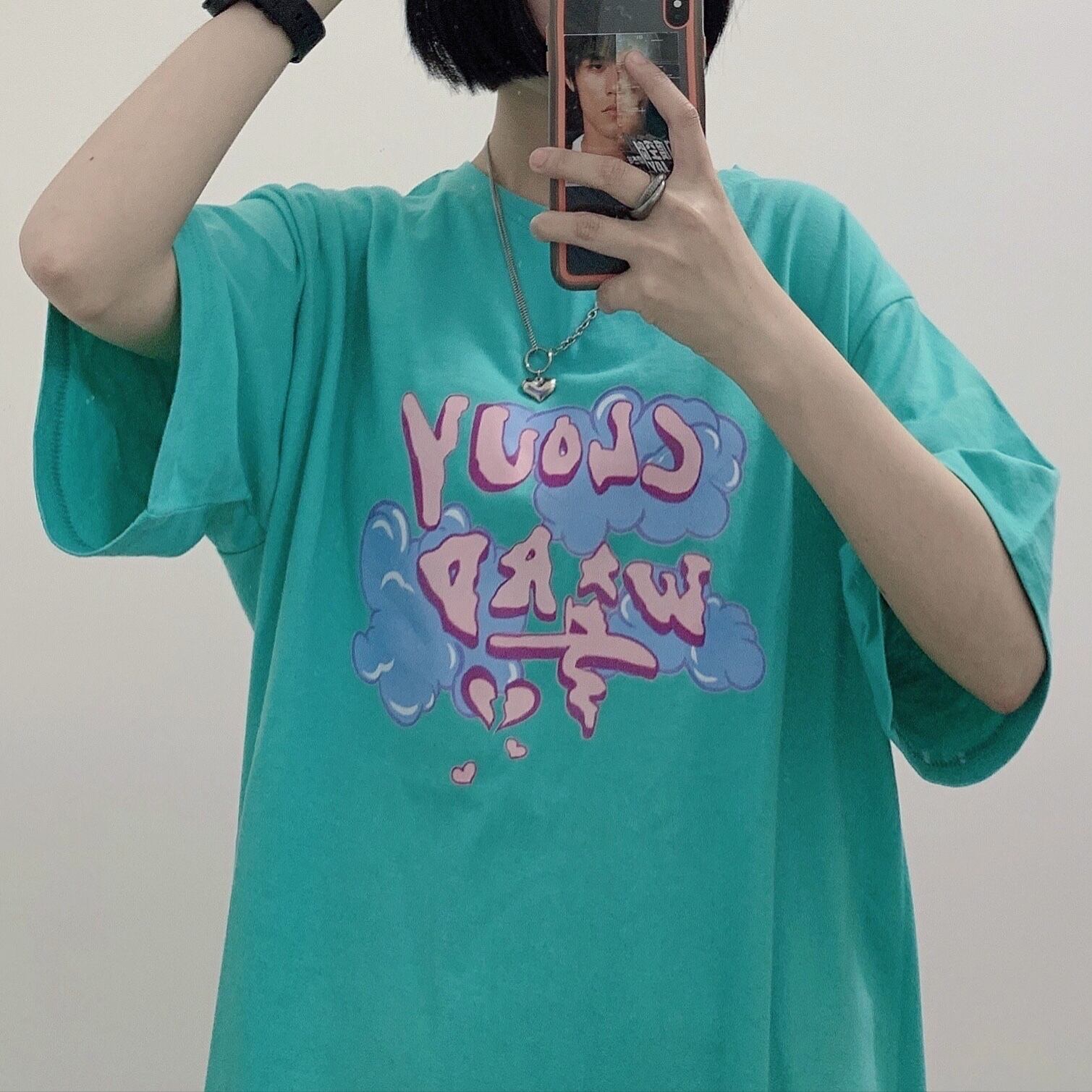 カジュアルTシャツレディース夏服韓国ファッショントレンドプリントルーズトップス 夏物 スタイル コーデ モノクロ Studio52030107663