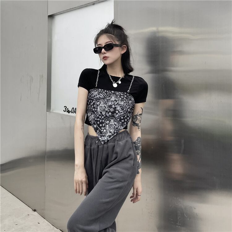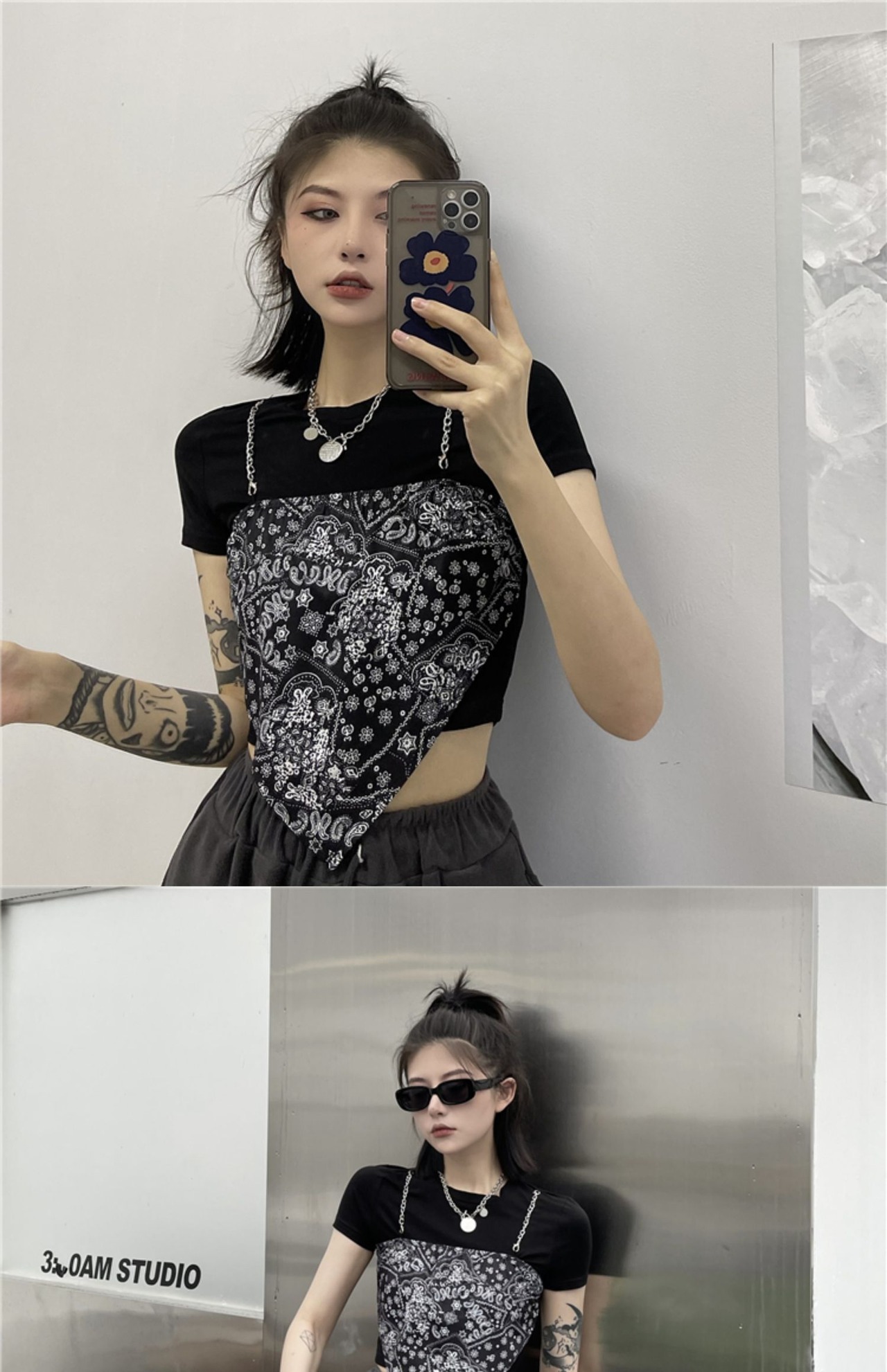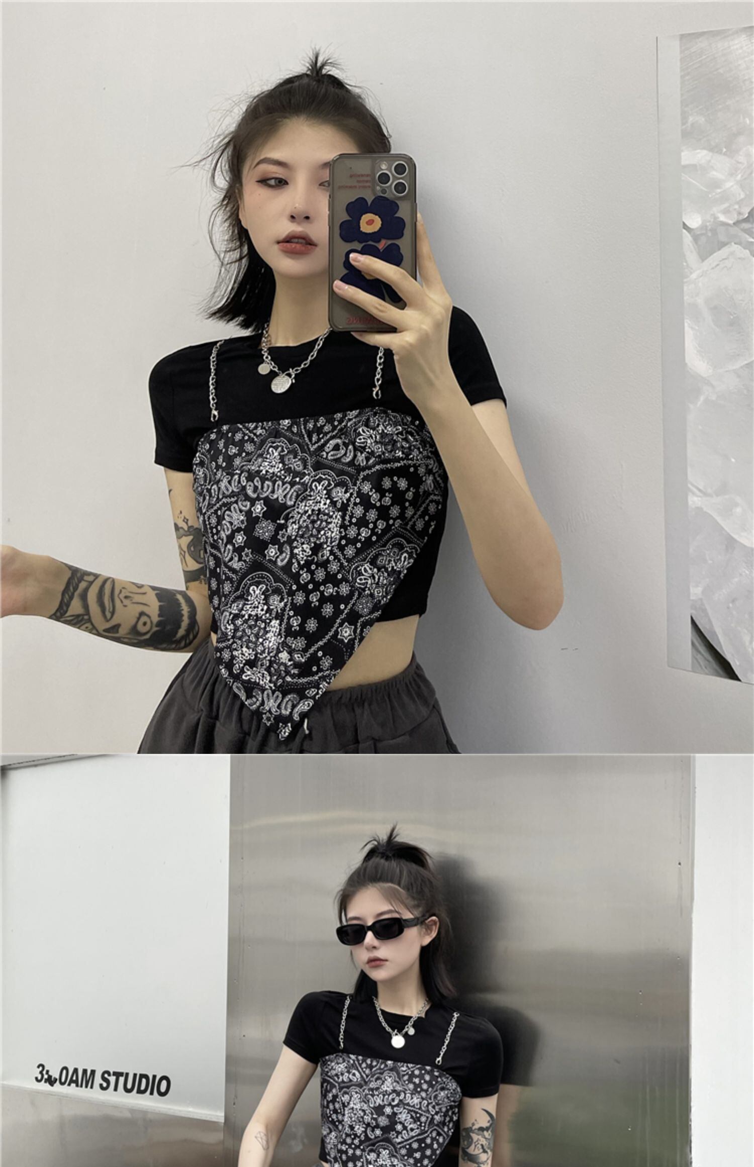Tシャツレディース夏服トレンドチェーン トップス 夏物 コーデ モノクロ Studio74338672753