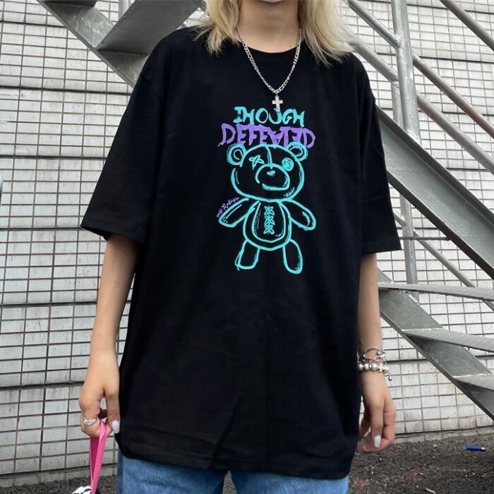Tシャツレディース夏服韓国ファッショントレンドルーズトップス 夏物 ヨーロピアン スタイル コーデ モノクロ Studio62110381635