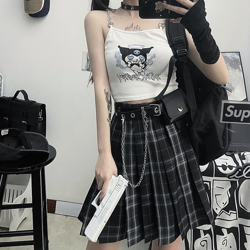 夏服ダークプリント柄スリムチェーン トップス 夏物 コーデ モノクロ Studio8709203046