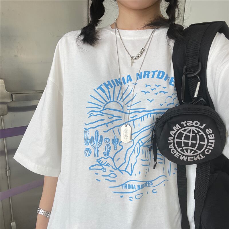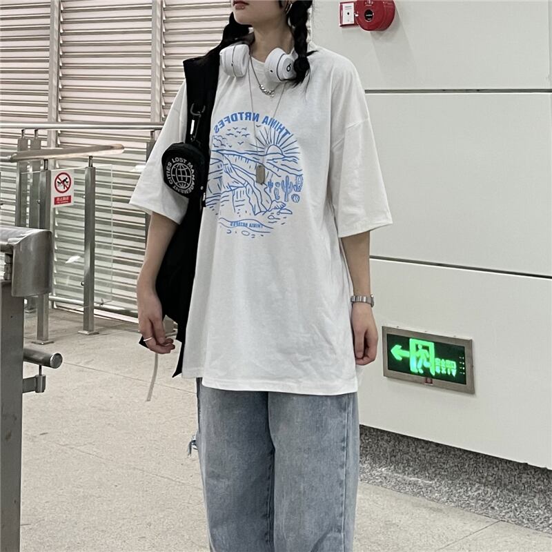 Tシャツシャツ レディース夏服韓国ファッショントレンドスタンダードプリントルーズカジュアルゆったりトップス レトロ 夏物 スタイル コーデ モノクロ Studio95974398582