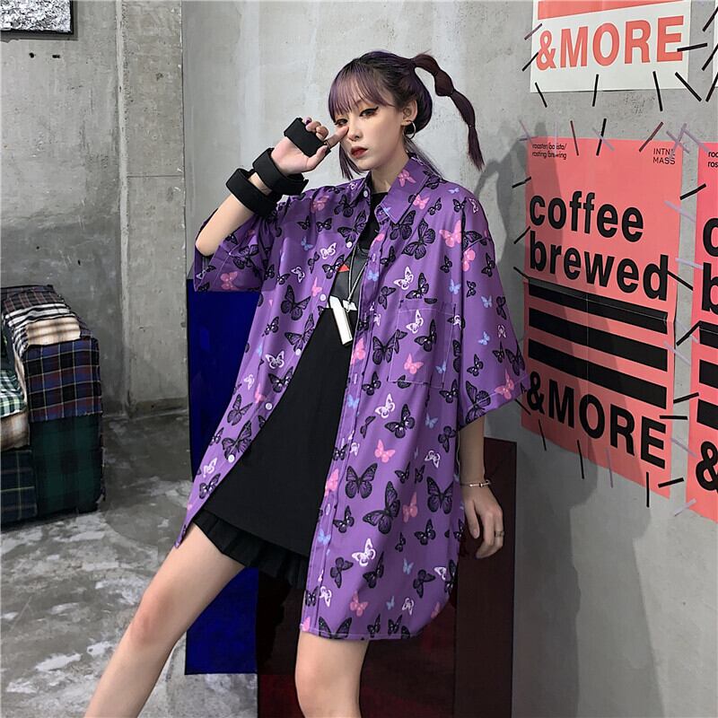 夏服韓国ファッショントレンドスタイルスタンダードButterflyデザイン プリント柄ルーズシャツ レディース レトロ ストリート 原宿 夏物 Studios42829272188 | pLegLad Studios