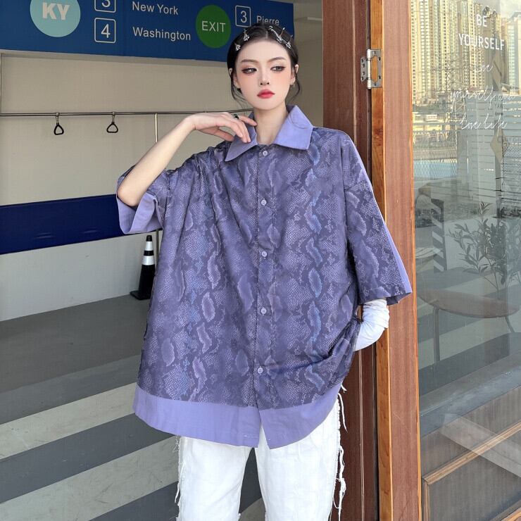 夏服韓国ファッショントレンドスタンダードスネークパターンルーズカジュアルシャツ レディース レトロ ストリート 夏物 スタイル Studios80771256124 | pLegLad Studios