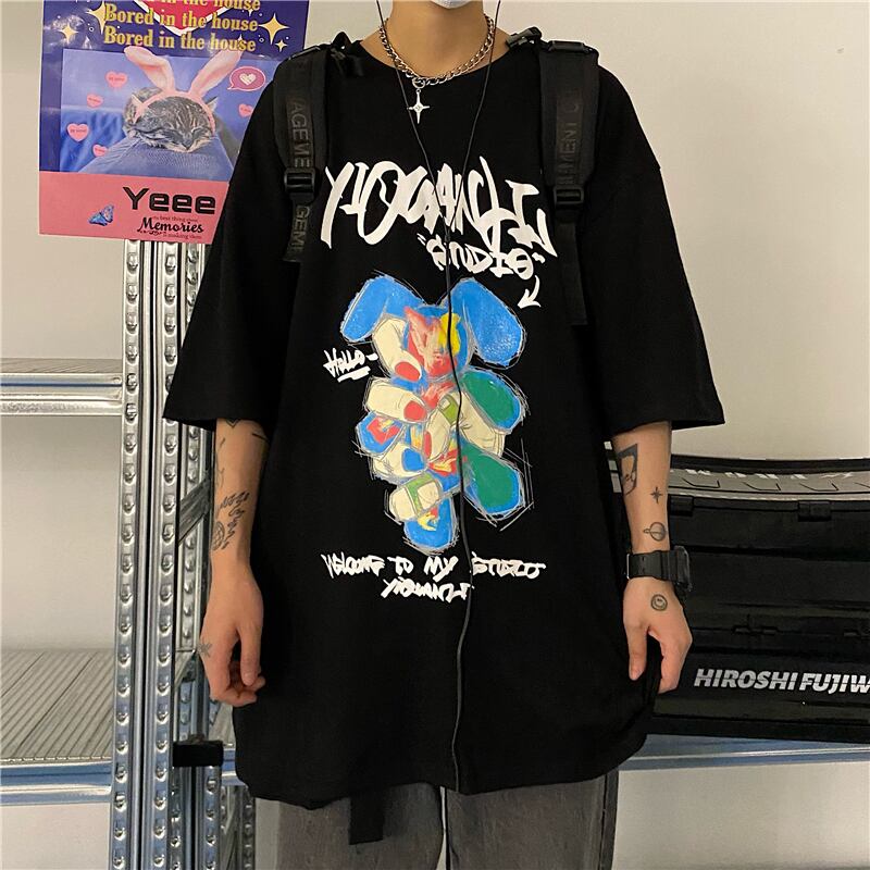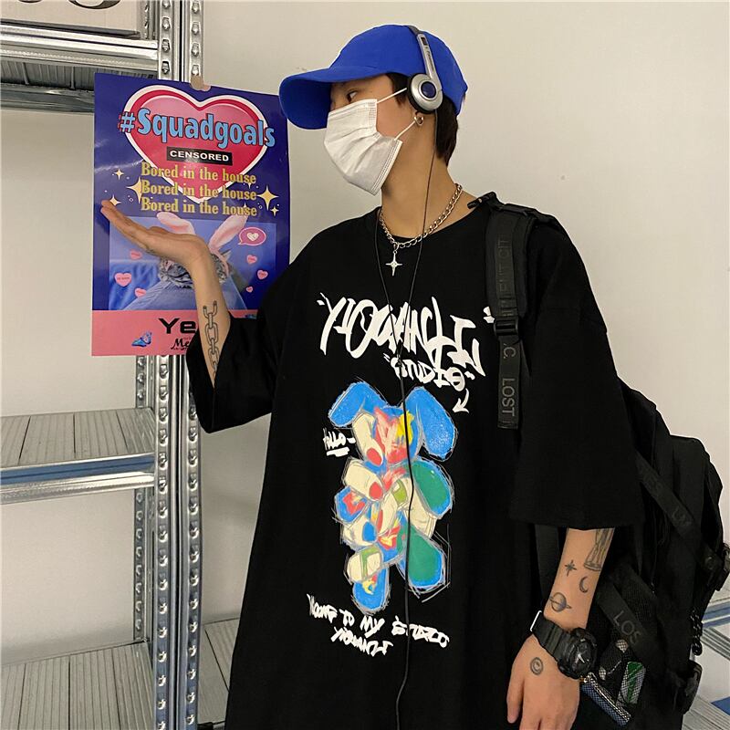 トップス レディース夏服韓国ファッショントレンドプリントルーズTシャツ 夏物 スタイル コーデ モノクロ Studio79040374534