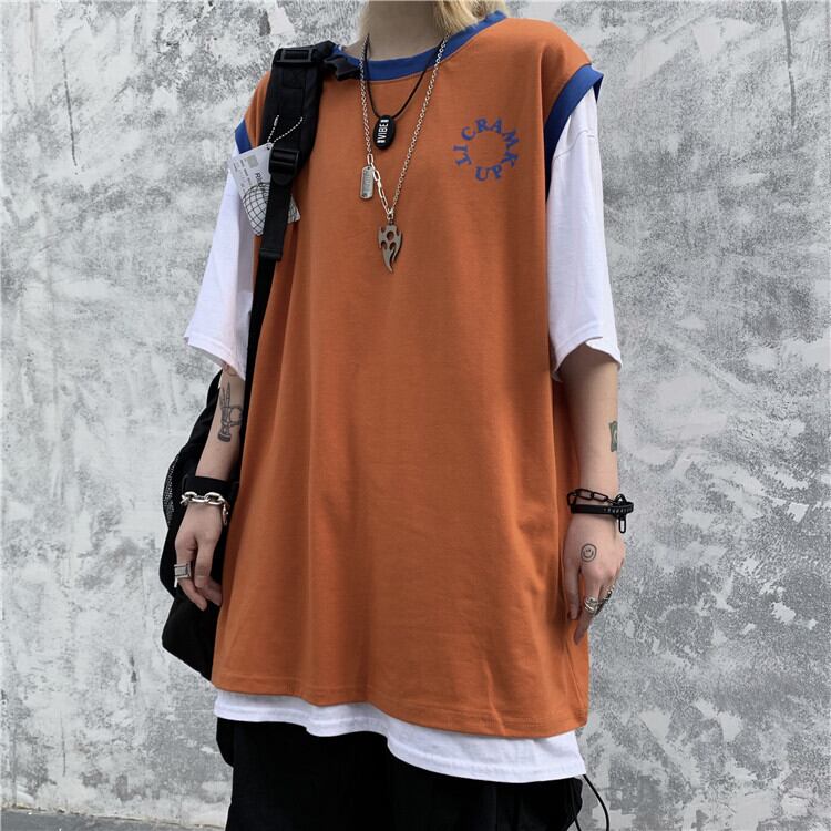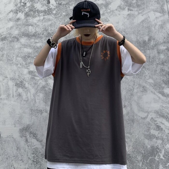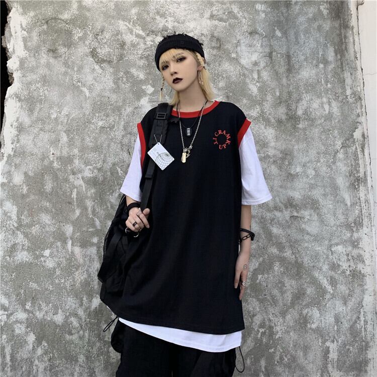 ノースリーブTシャツレディース夏服韓国ファッショントレンドカラーラウンドネックルーズトップス 夏物 Oネック スタイル コーデ モノクロ Studio70518790981
