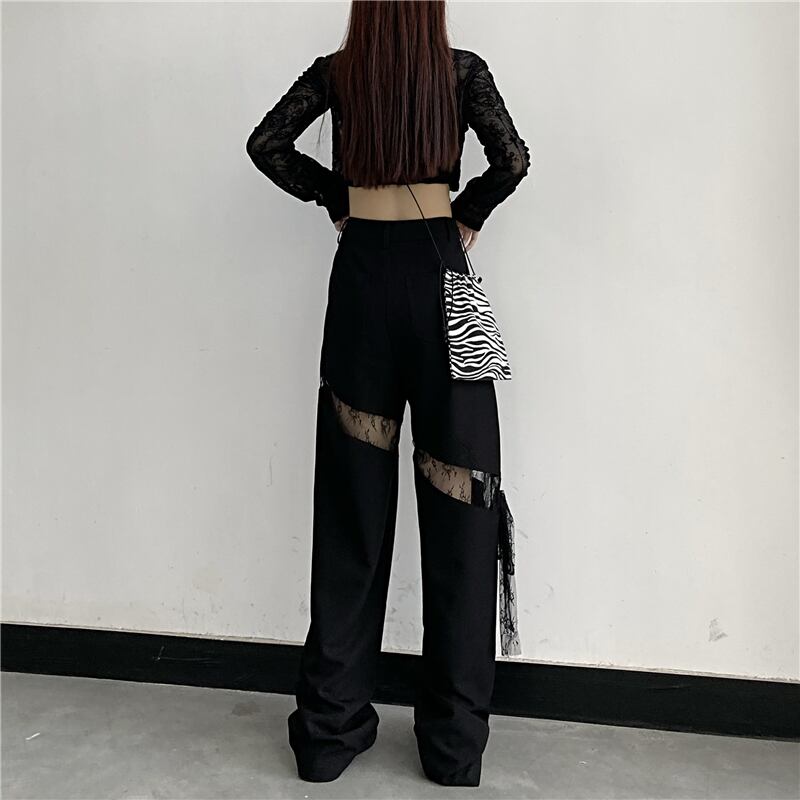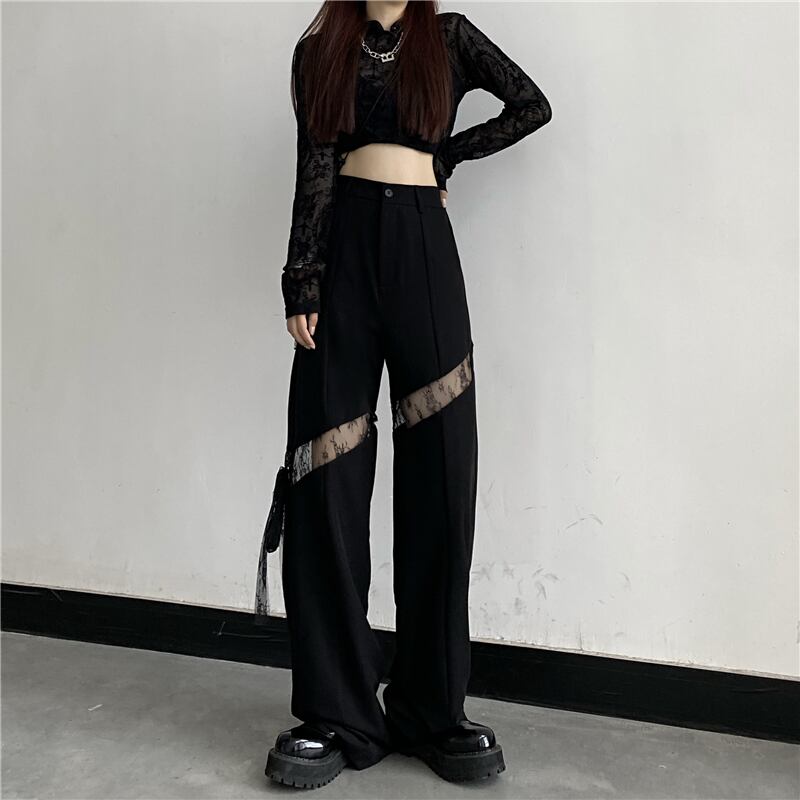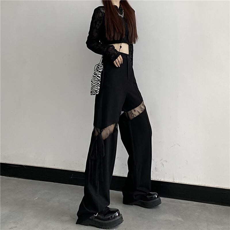 スタイルレディース夏服韓国ファッションレースルーズパンツ 夏物 ステッチ コーデ モノクロ Studio90647245534