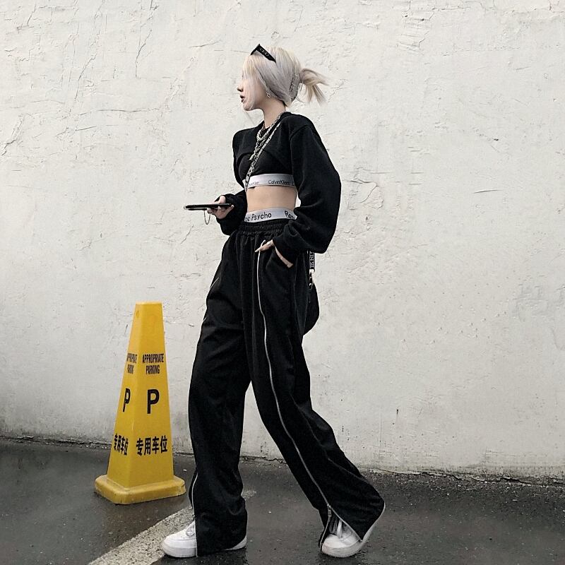 スタイルカジュアルレディース夏服トレンドストレッチウェストジッパールーズワイドレッグパンツ エラスティック 伸縮 夏物 ワイドパンツ ボーイズ ウエスト コーデ モノクロ Studio13976223928