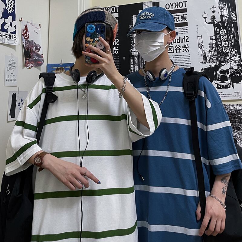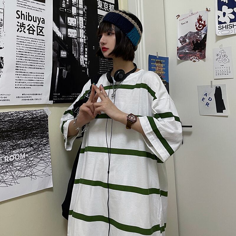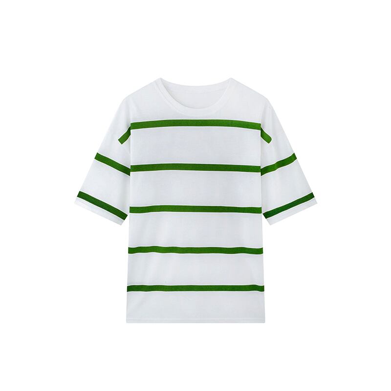 夏服カジュアルTシャツシャツ レディース韓国ファッショントレンドストライプルーズラウンドネックゆったり 夏物 Oネック ボーイズ スタイル コーデ モノクロ Studio73137276264