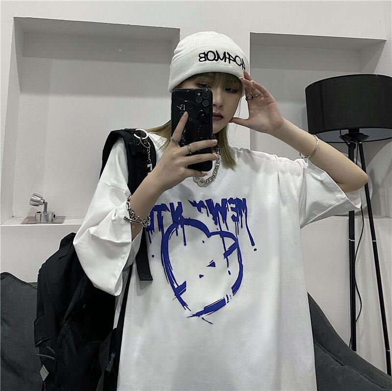ルーズTシャツレディース夏服韓国ファッショントレンドプリントトップス 夏物 スタイル コーデ モノクロ Studio89414857752
