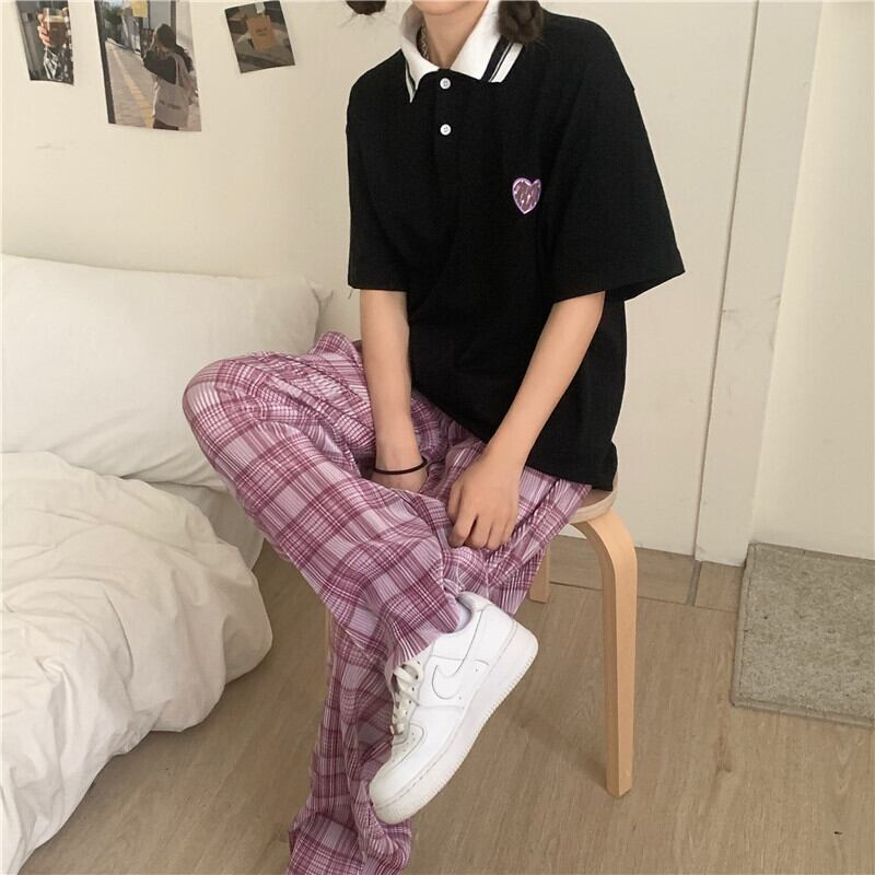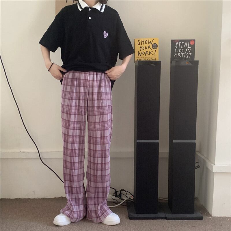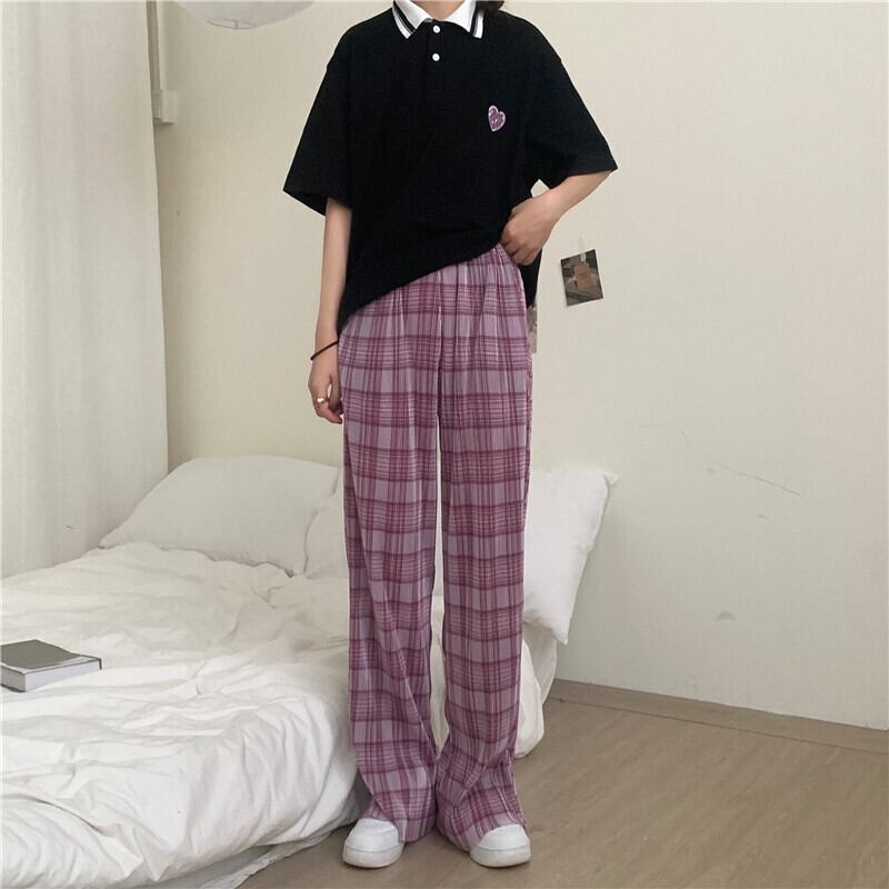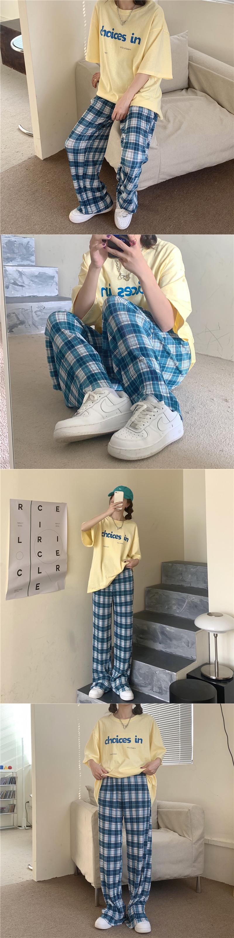 スタンダード格子柄レディース夏服トレンド薄手パンツ ルーズ レトロ 夏物 コーデ モノクロ Studio67417880322