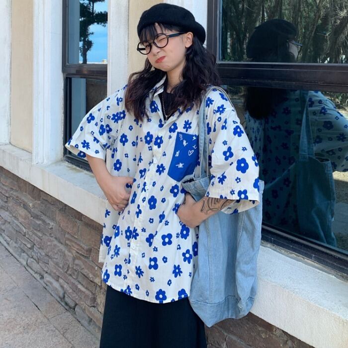 夏服韓国ファッショントレンドスタイルプリントルーズシャツ レディース 大人ガーリー スウィート キュート カジュアル 原宿 夏物 フラワーデザイン Studios14721030352 | pLegLad Studios