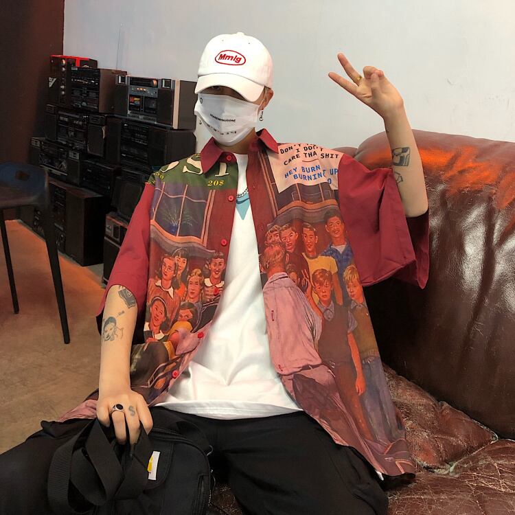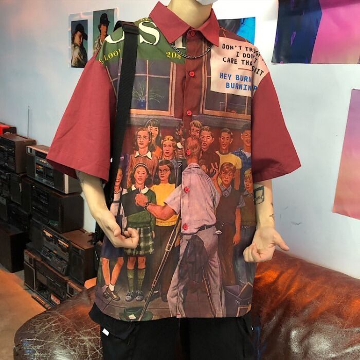 夏服韓国ファッショントレンドスタイルスタンダードプリントルーズシャツ トップス 薄手ジャケット メンズレディース レトロ ストリート 原宿 夏物 ヨーロピアン Studios79314497969 | pLegLad Studios