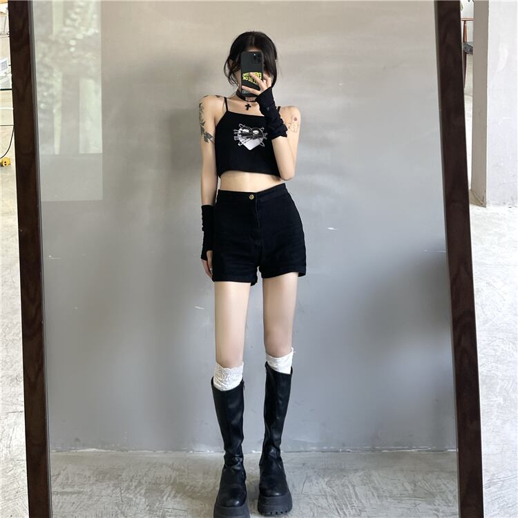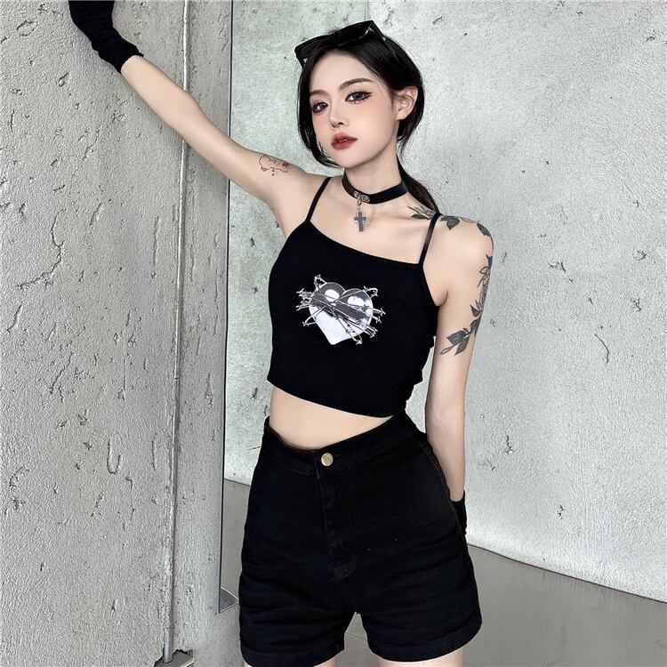 夏服韓国ファッションプリントスリムトップス 夏物 スタイル コーデ モノクロ Studio10316104823
