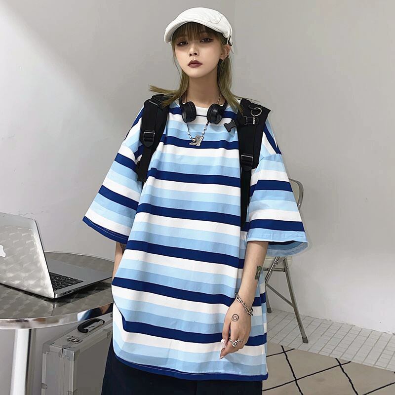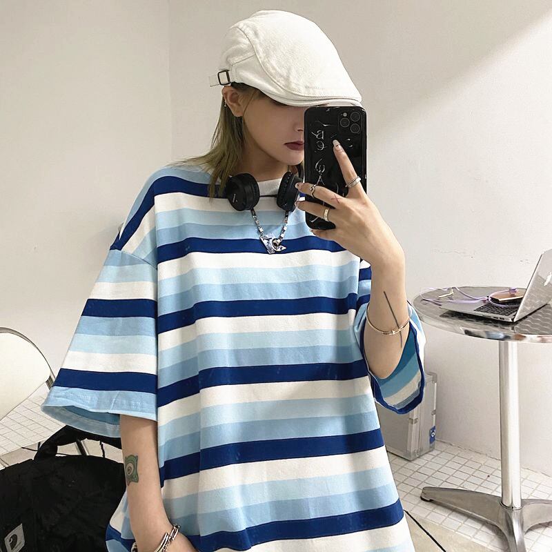 カラーTシャツレディース夏服韓国ファッショントレンドストライプルーズトップス 夏物 コーデ モノクロ Studio4931606500