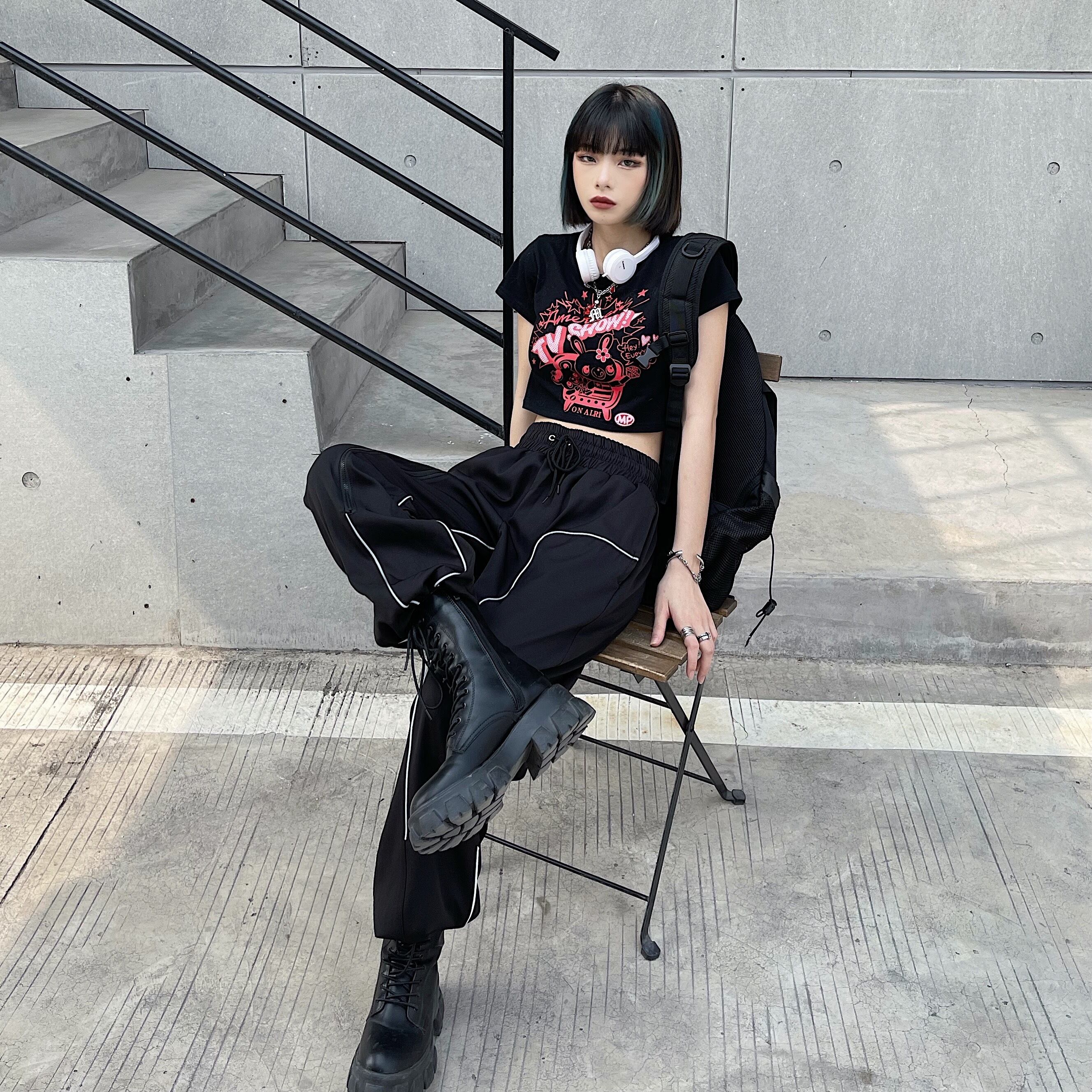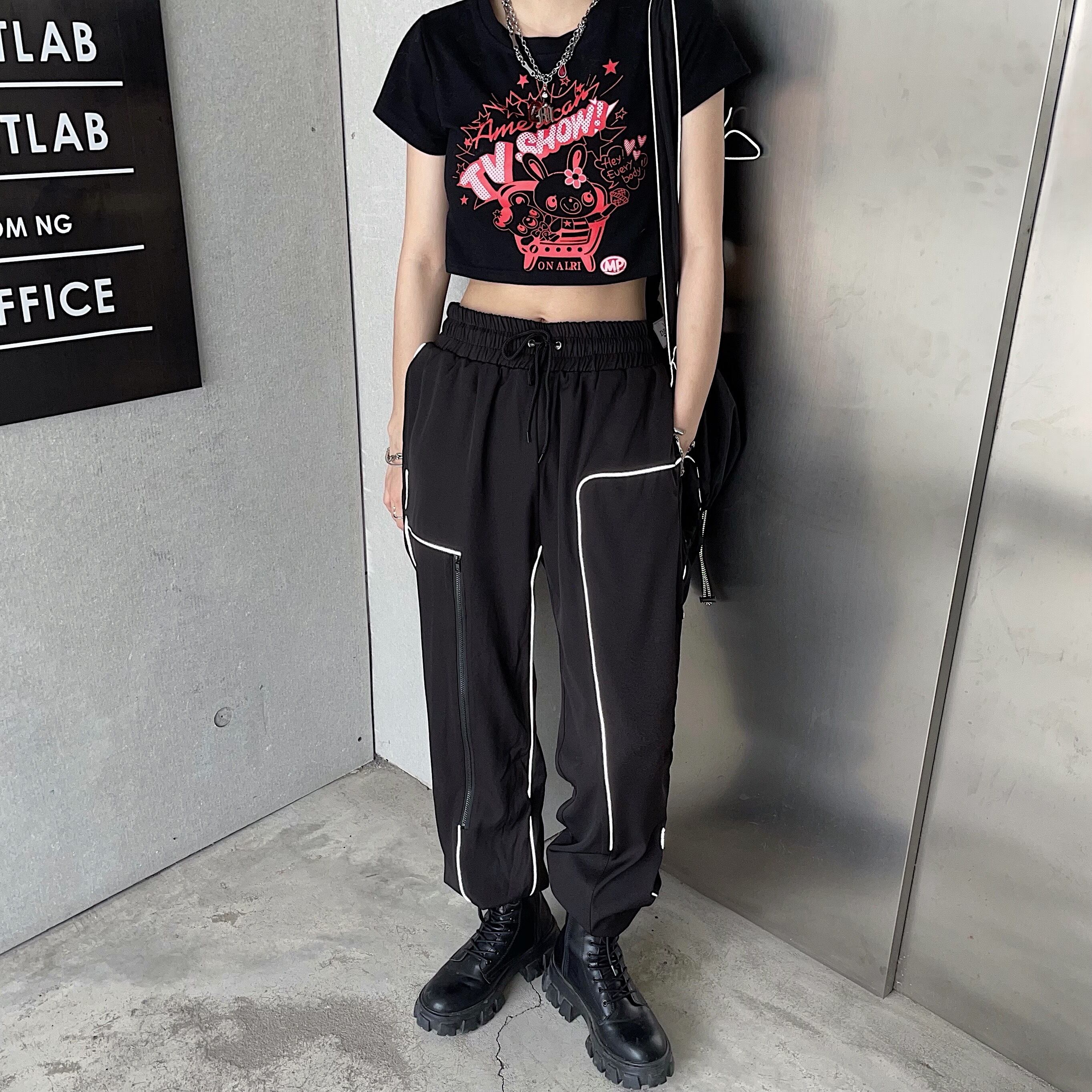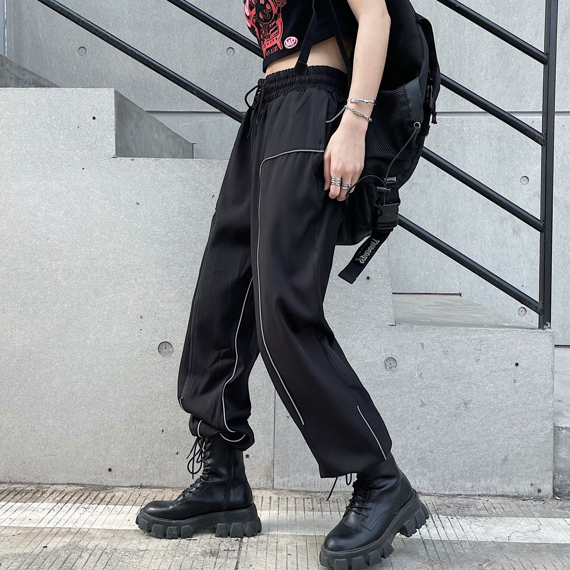 レギンス カジュアルパンツ レディース韓国ファッショントレンドスタイルストライプジッパーハイウェストウェストワイドレッグ ストリート 原宿 ワイドパンツ ウエスト Studios7758749923 | pLegLad Studios