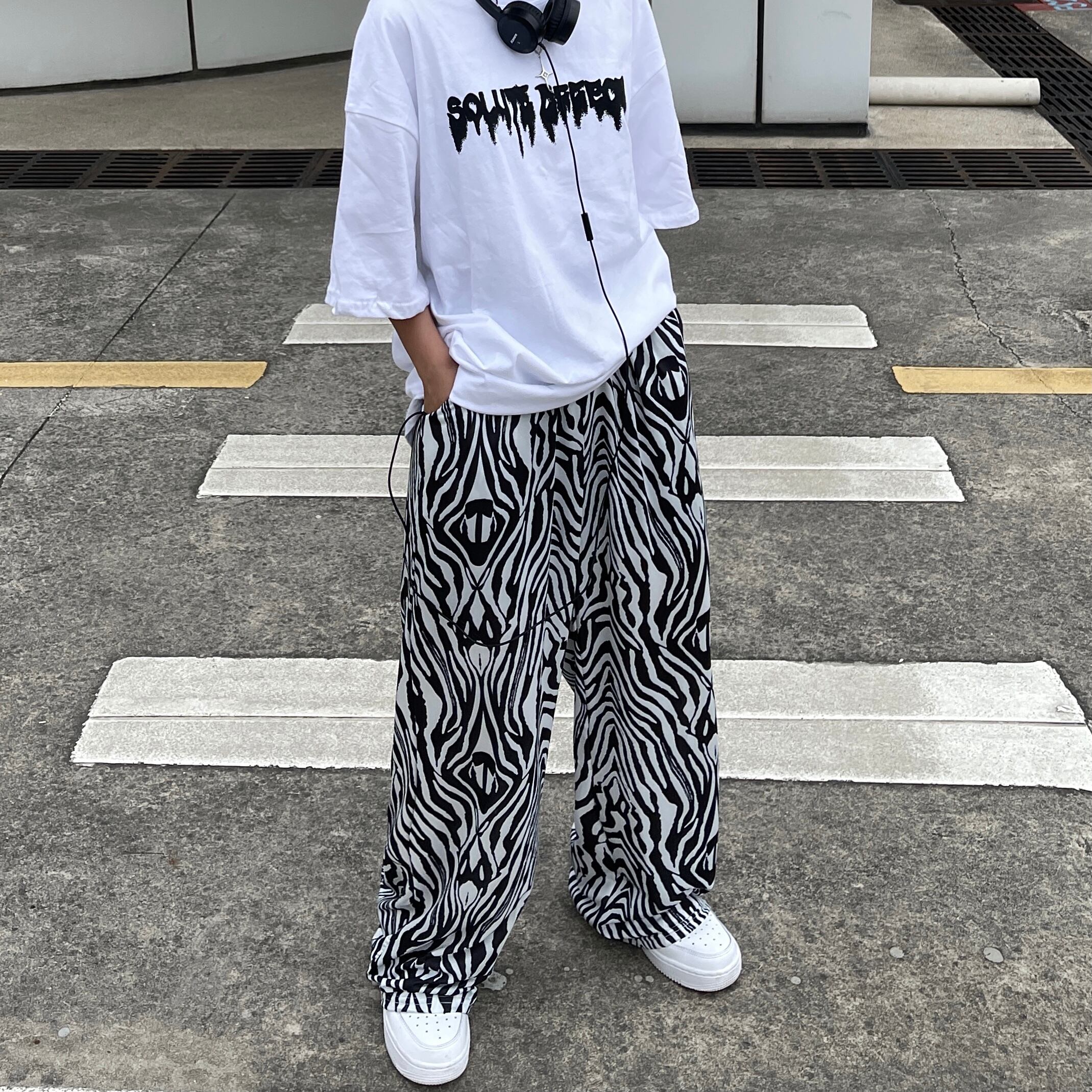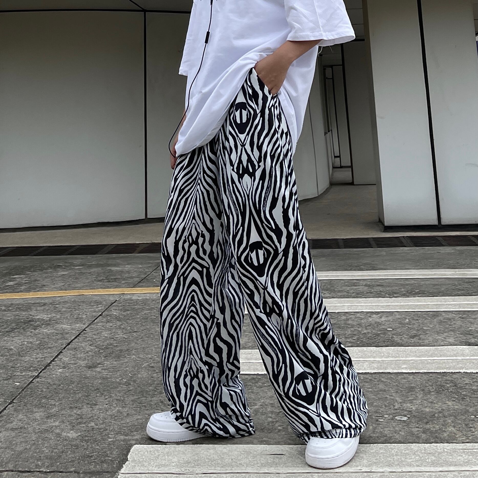 パターンパンツ レディース夏服トレンドハイウェストウェストルーズカジュアル 夏物 ウエスト コーデ モノクロ Studio60077488805