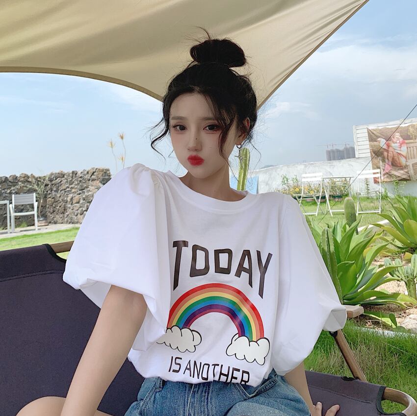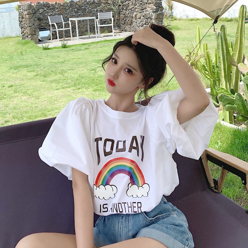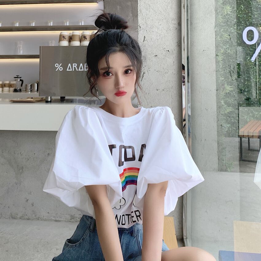 スタイルパフスリーブスリーブTシャツレディース夏服韓国ファッショントレンドプリントトップス 夏物 コーデ モノクロ Studio23151127793