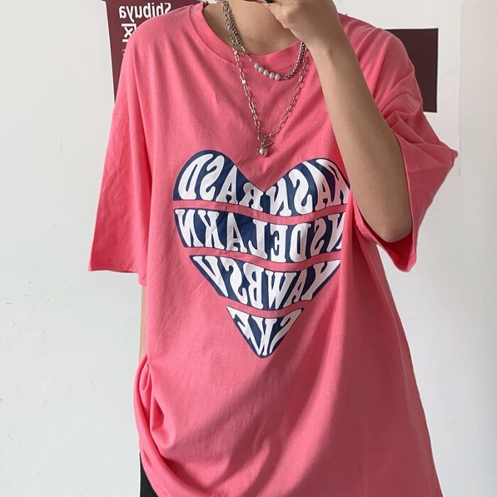 夏服韓国ファッションTシャツレディーストレンドプリントルーズラウンドネックトップス 夏物 Oネック ボーイズ コーデ モノクロ Studio12672152010