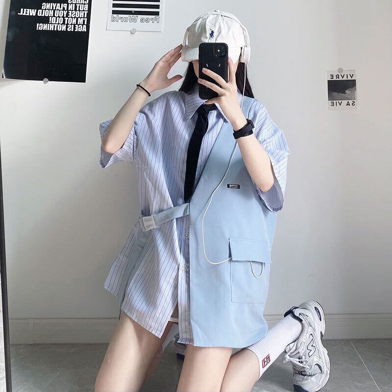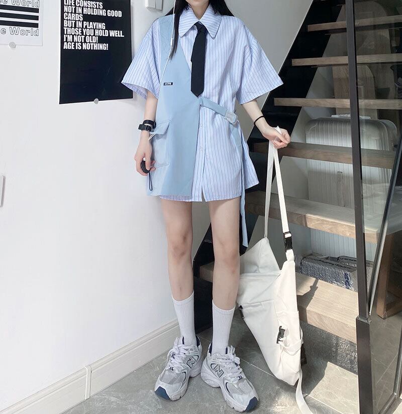 色:青いシャツとネクタイ,白いシャツとネクタイ,黒のベスト,青いベスト