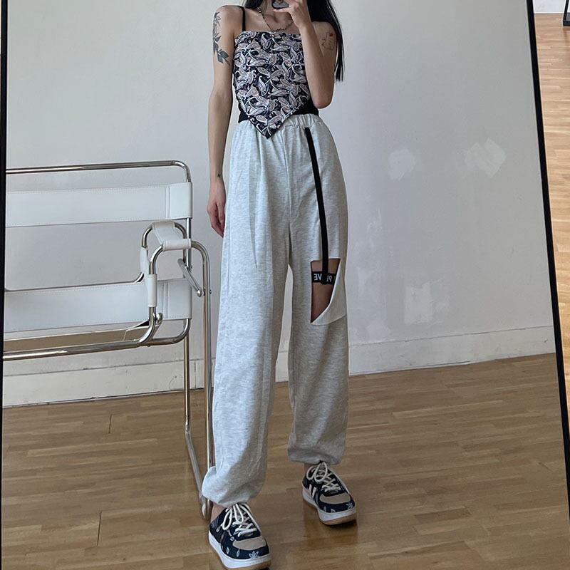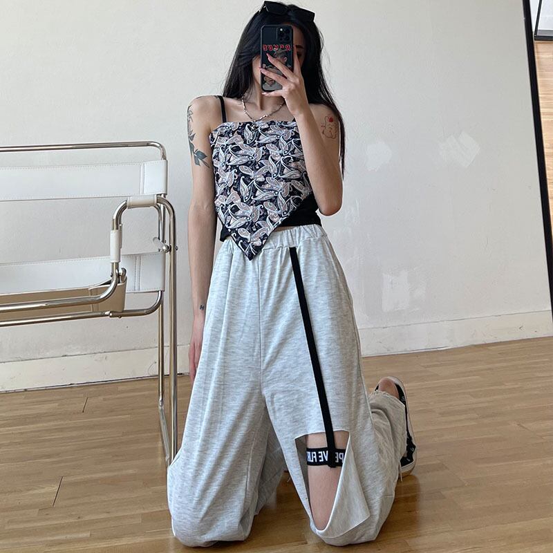 カジュアルグレーパンツ レディース夏服スタイル韓国ファッションワイドレッグ 夏物 ワイドパンツ コーデ モノクロ Studio64782550316
