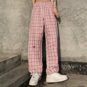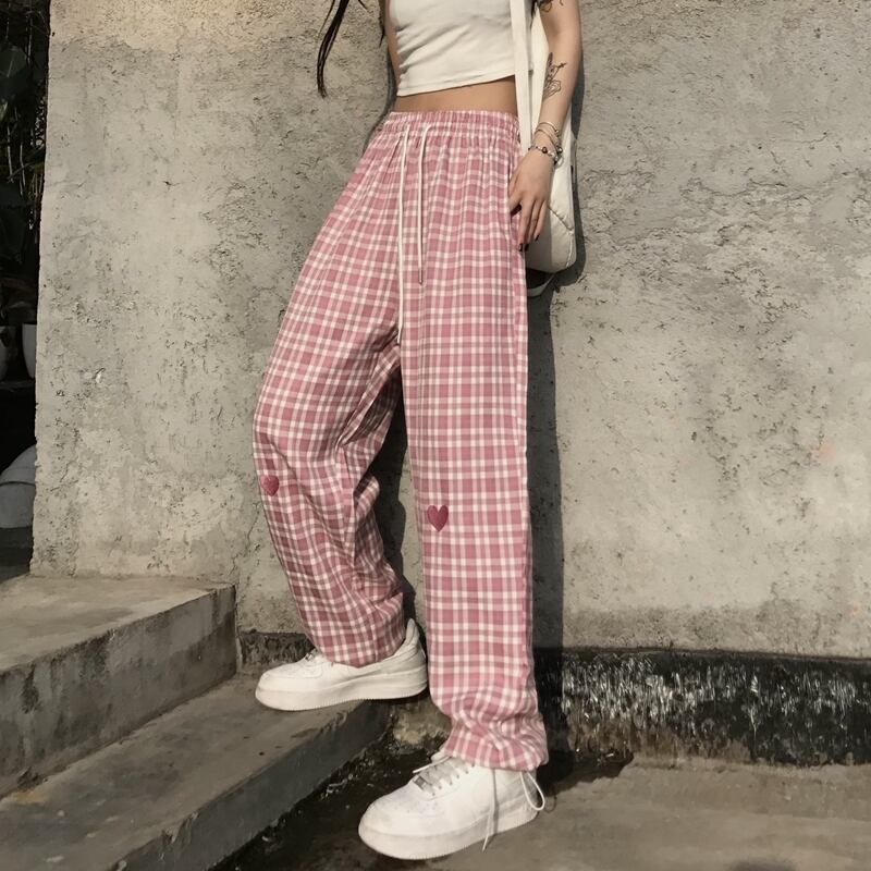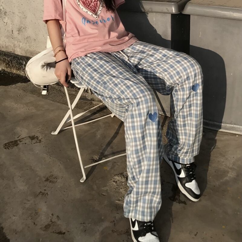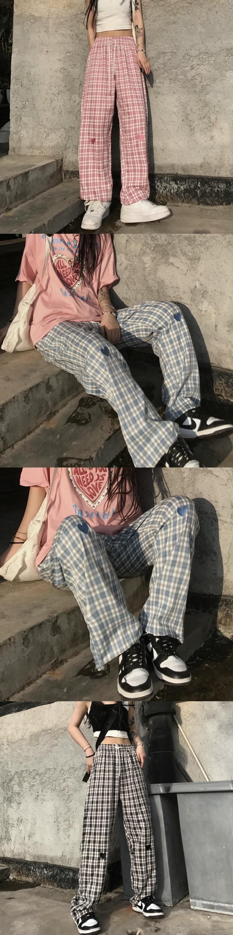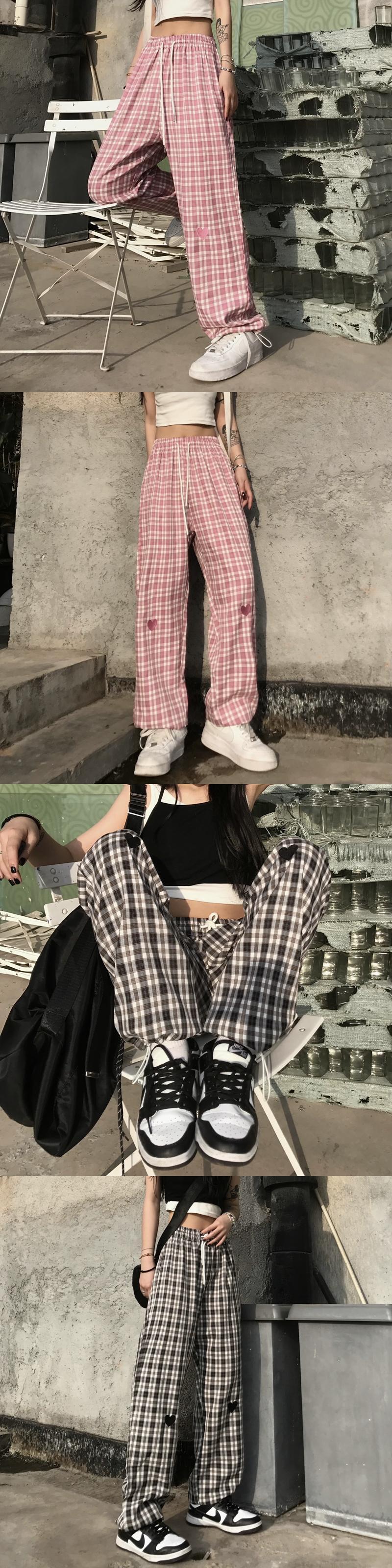 格子柄パンツ 夏服スタイル韓国ファッション刺繍薄手ハイウェストウェストスリム 夏物 ウエスト コーデ モノクロ Studio15193416182