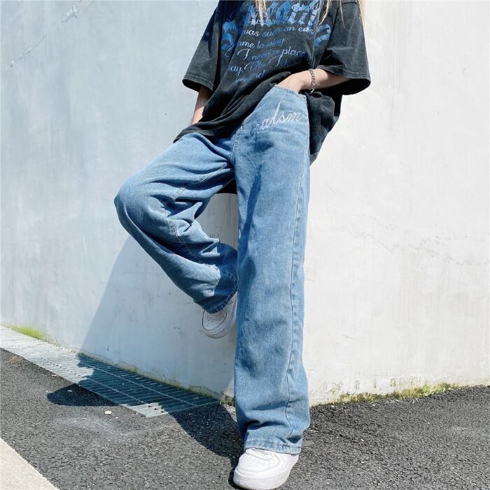 ジーンズ レディース韓国ファッショントレンドスタンダード刺繍ハイウェストウェスト薄手ルーズ レトロ ストリート ボーイズ ウエスト Studios3349115676 | pLegLad Studios
