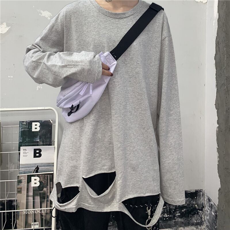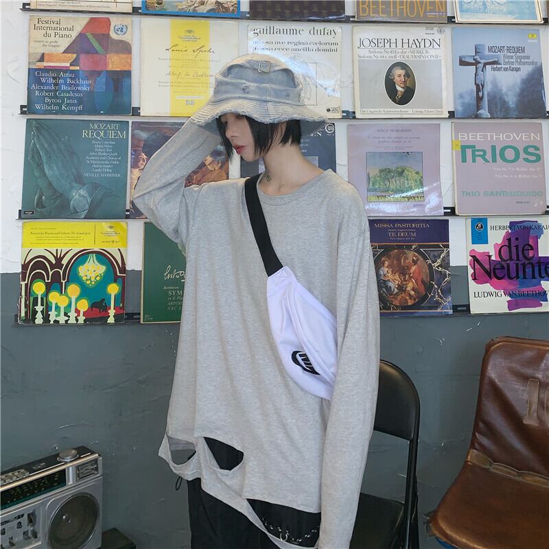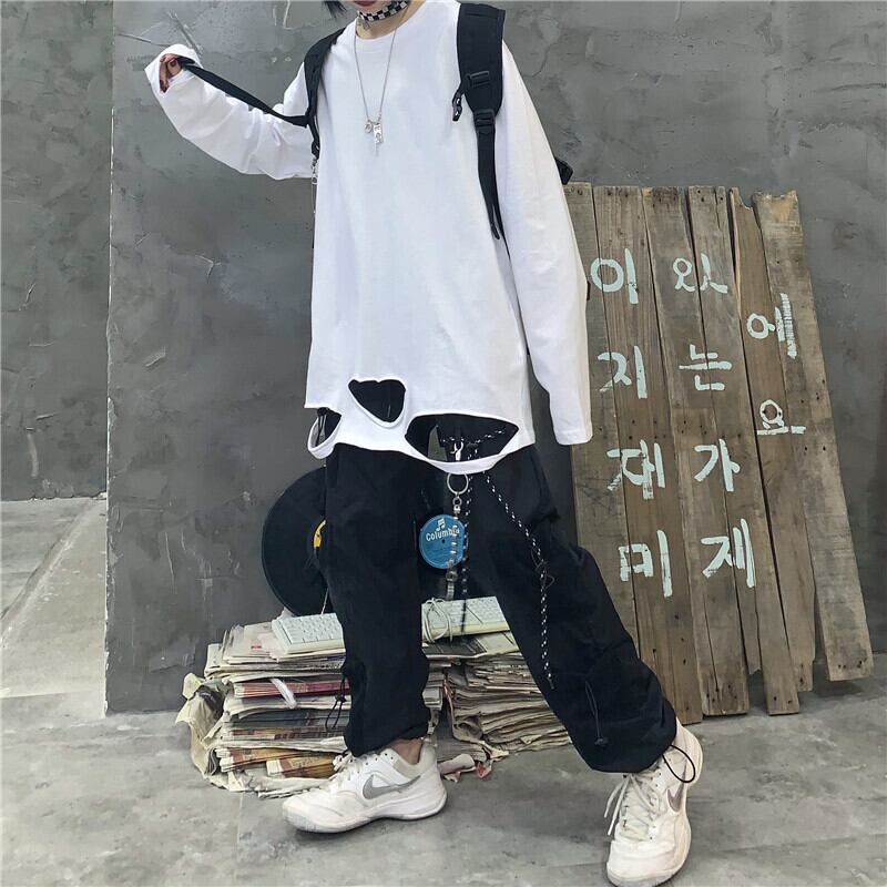 秋物韓国ファッショントレンドゆったりトップス ルーズメンズレディース ロング シャツ ストリート 原宿 オータム Tシャツ スタイル 長袖 Studios8672300371 | pLegLad Studios