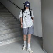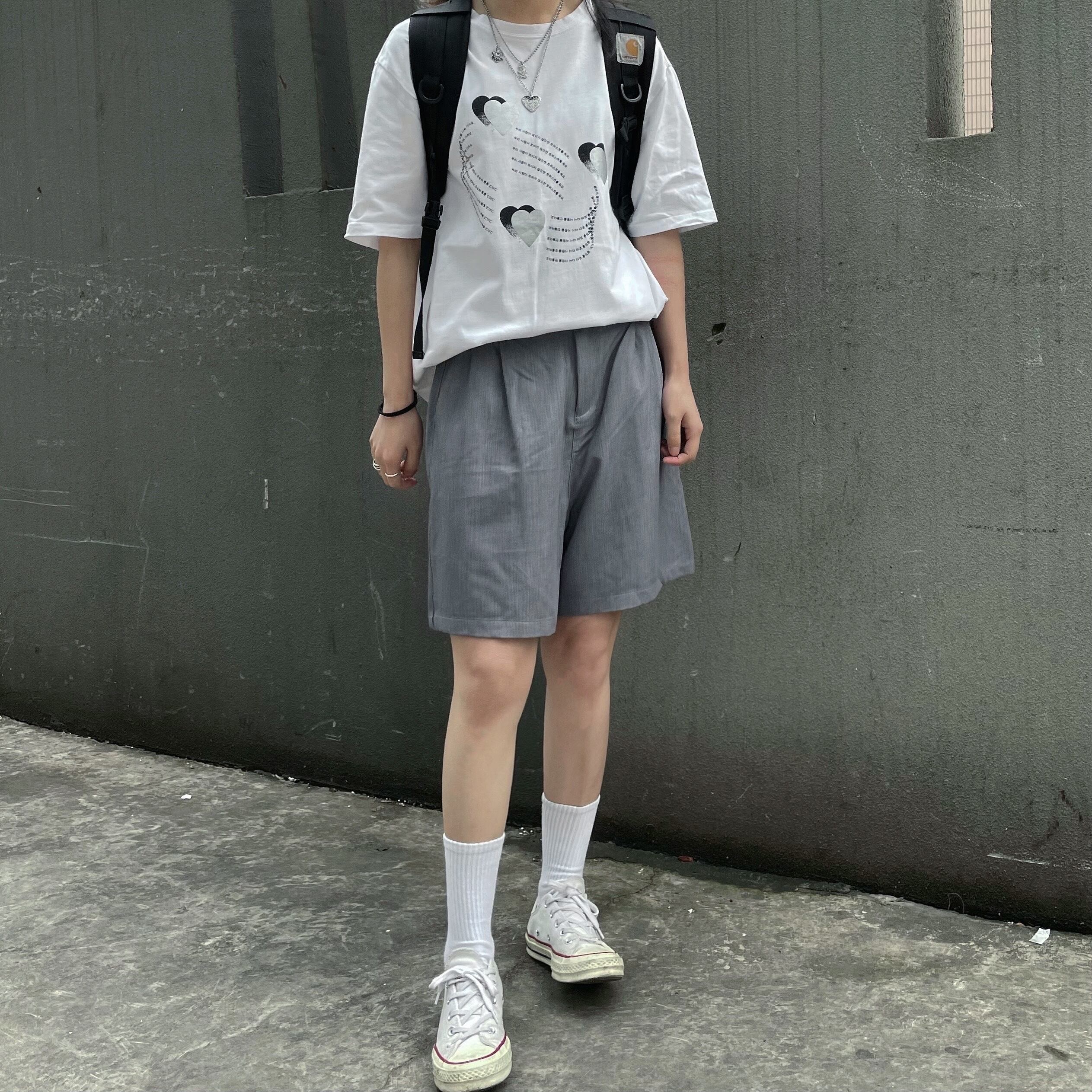 ショーツ レディース夏服トレンドグレーハイウェストウェストカジュアルパンツ 夏物 ウエスト コーデ モノクロ Studio79557128401