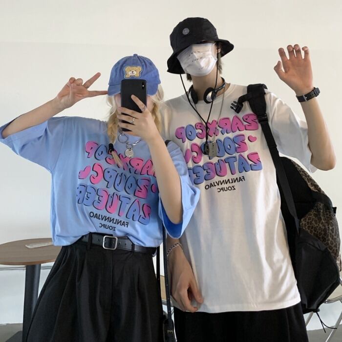 夏服韓国ファッショントレンドスタイルスタンダードプリントルーズラウンドネック半袖スリーブTシャツメンズレディース ショート レトロ ハーフスリーブ ストリート 原宿 夏物 Oネック Studios23956161432 | pLegLad Studios