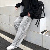 韓国ファッショントレンドスタイルスタンダードFlowerデザイン ギャザーカジュアルパンツ ルーズメンズレディース レトロ 原宿 フラワーデザイン Studios21821536709 | pLegLad Studios