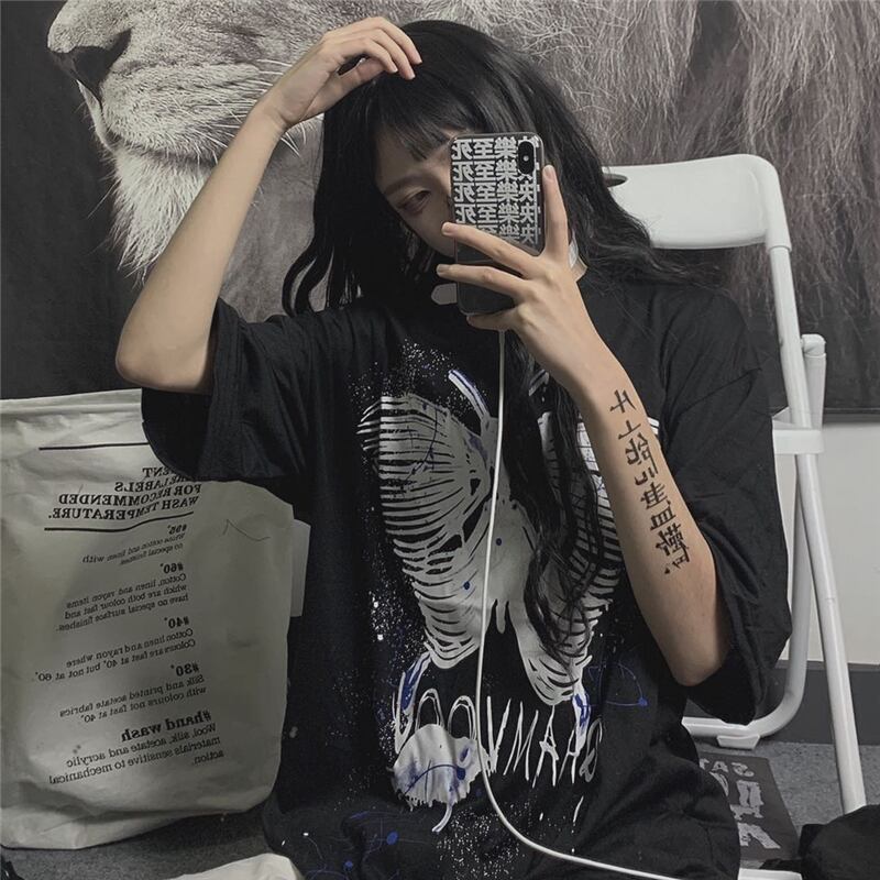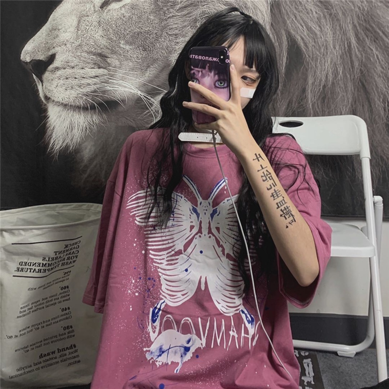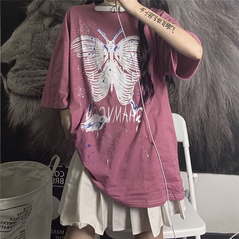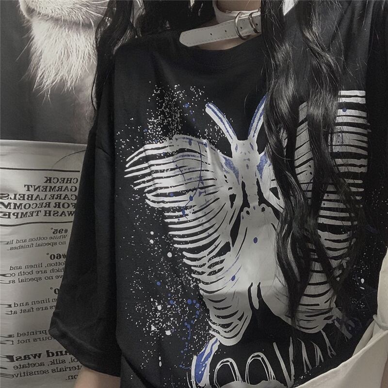 Tシャツシャツ レディース夏服韓国ファッショントレンドダークButterflyデザイン プリントルーズゆったり 夏物 スタイル コーデ モノクロ Studio98969046801