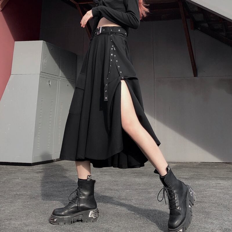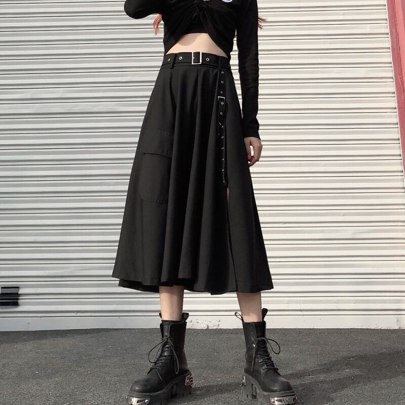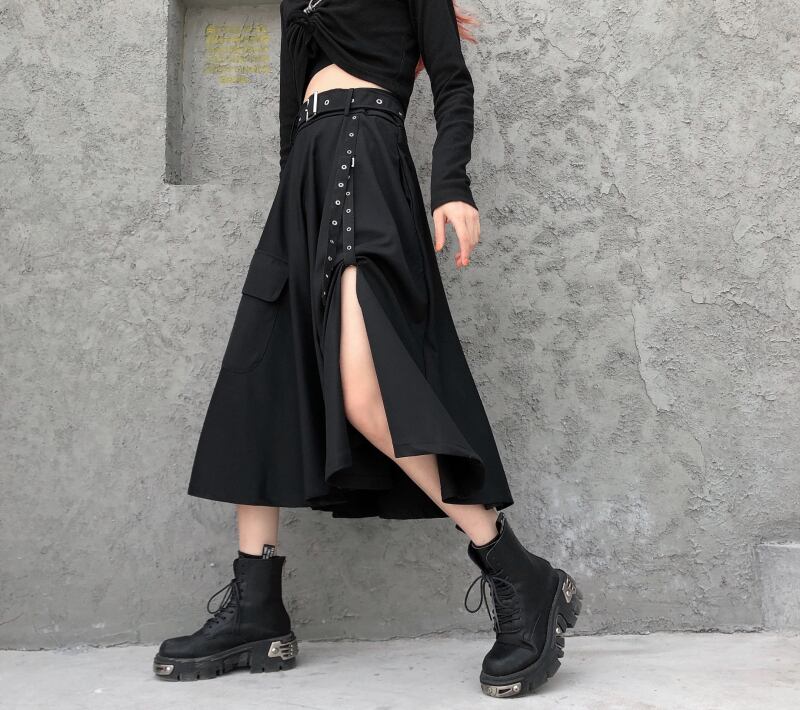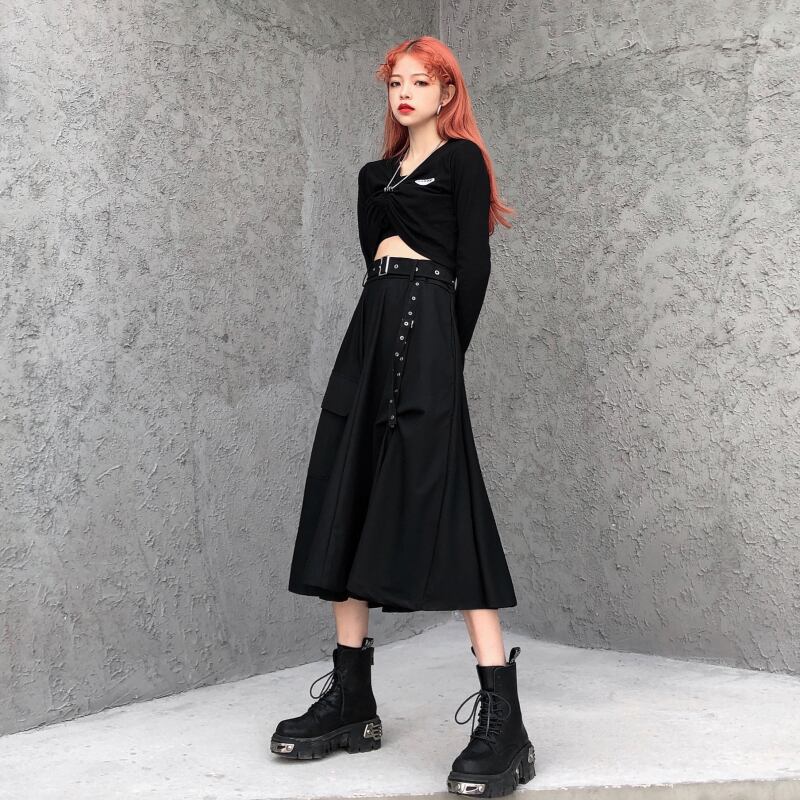 ウェストスカート レディース夏服韓国ファッショントレンドスタンダードスタイルダークブラック薄手Aライン レトロ 夏物 ウエスト ミドル丈 Studios36239471727 | pLegLad Studios
