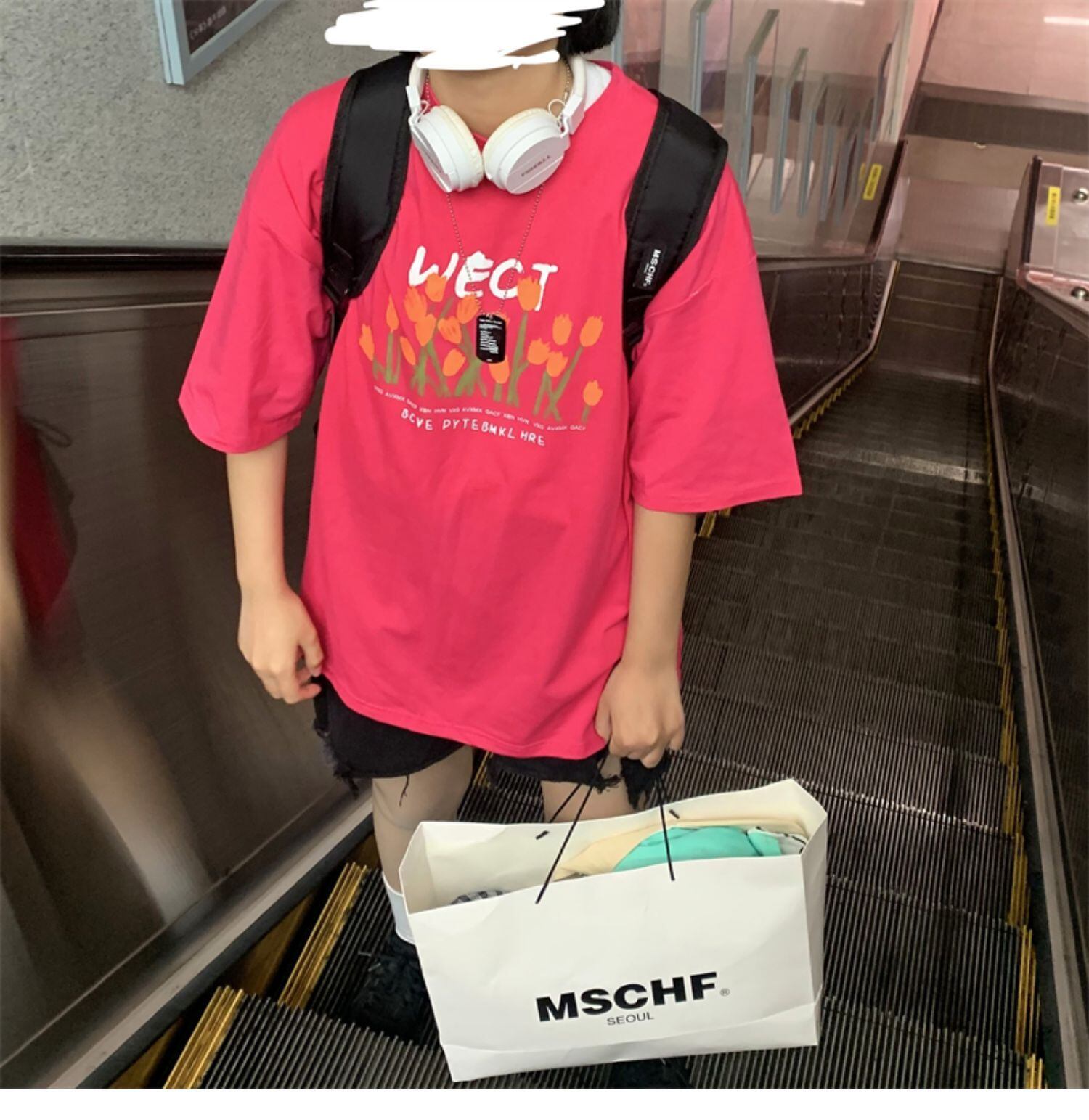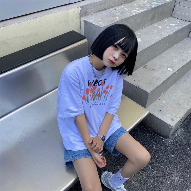 Tシャツシャツ レディース夏服韓国ファッショントレンドラウンドネックルーズゆったり 夏物 Oネック スタイル コーデ モノクロ Studio37122651490